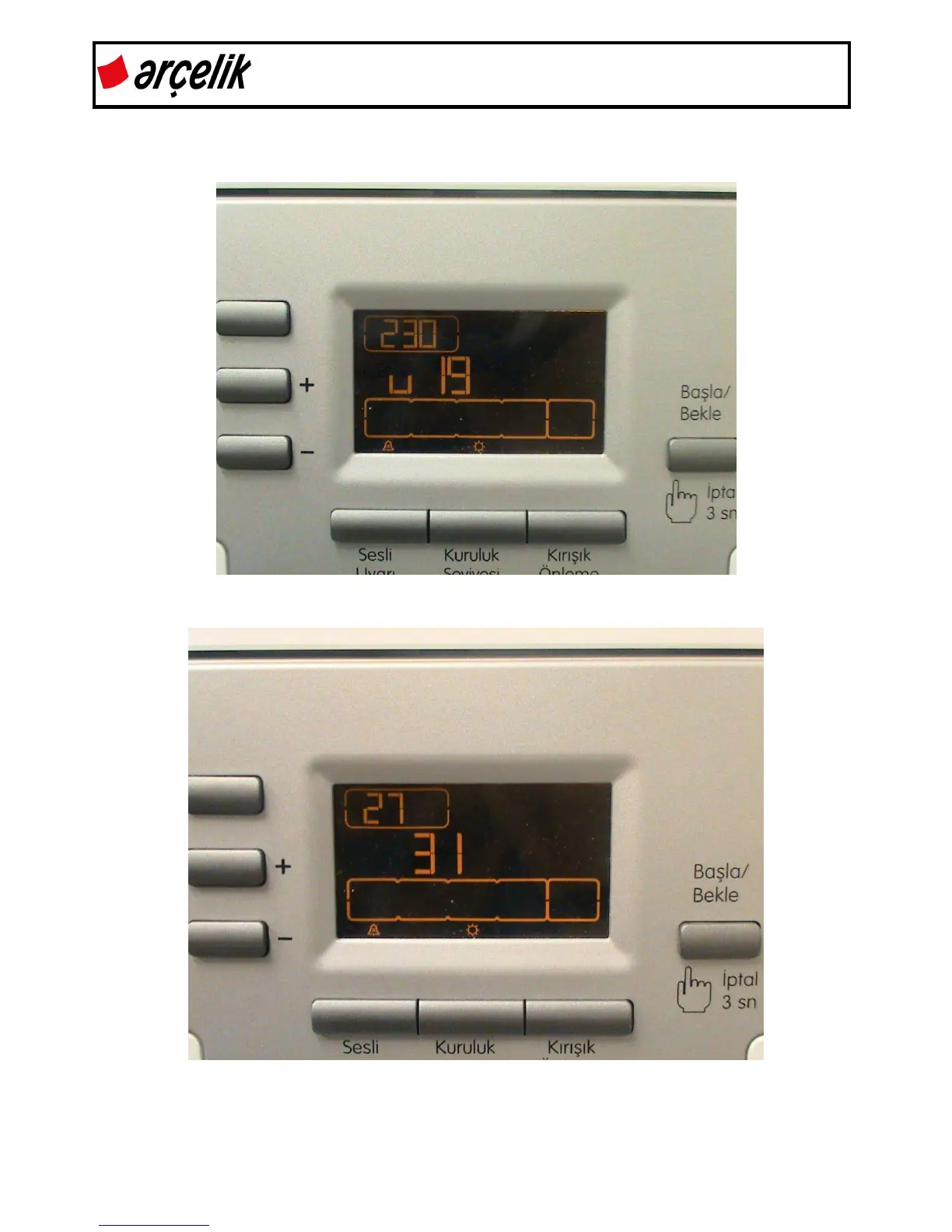 Step 4: The values of the heater NTC and door NTC are shown on the display.
