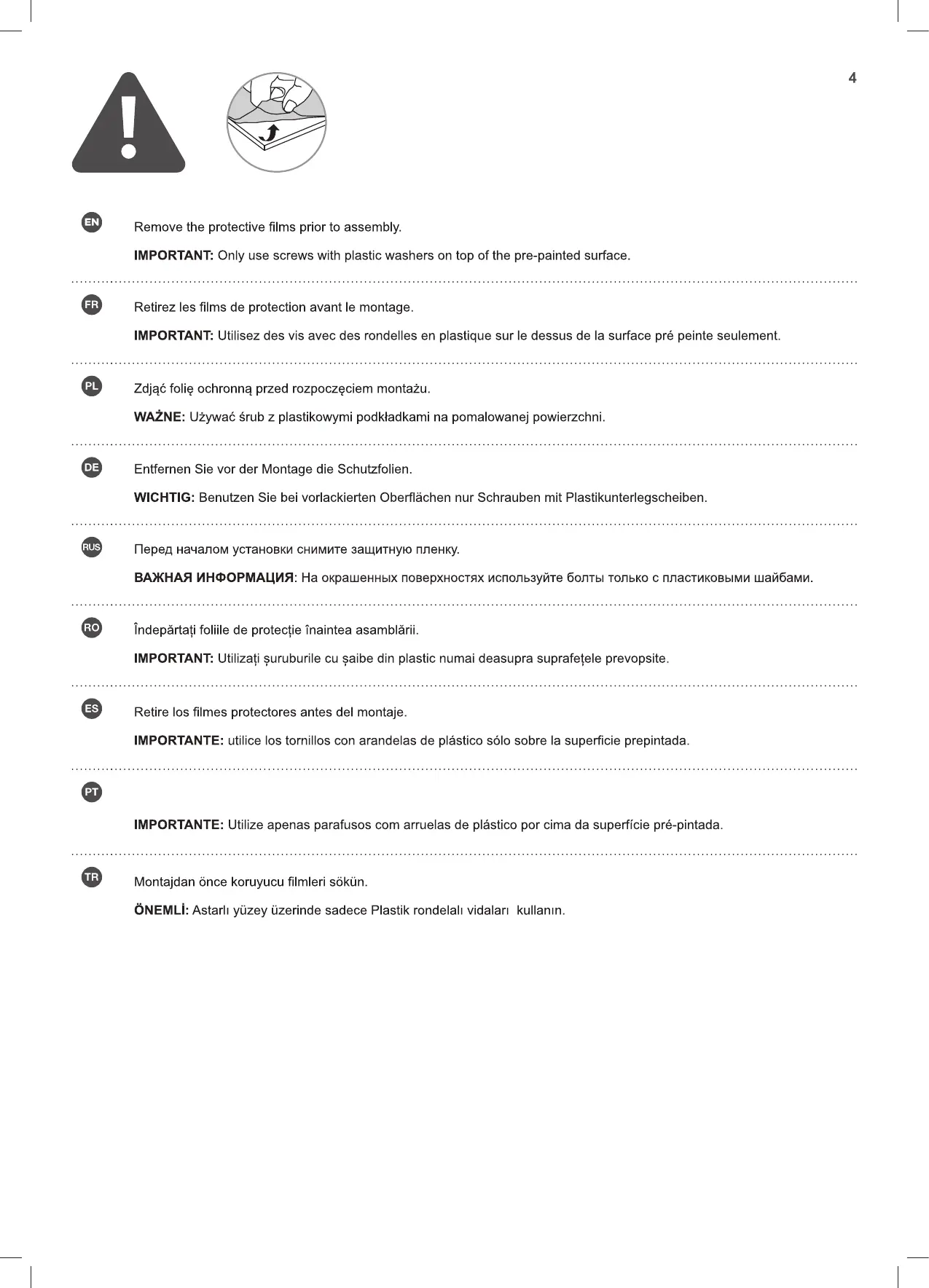 Retire as películas de proteção antes da montagem.