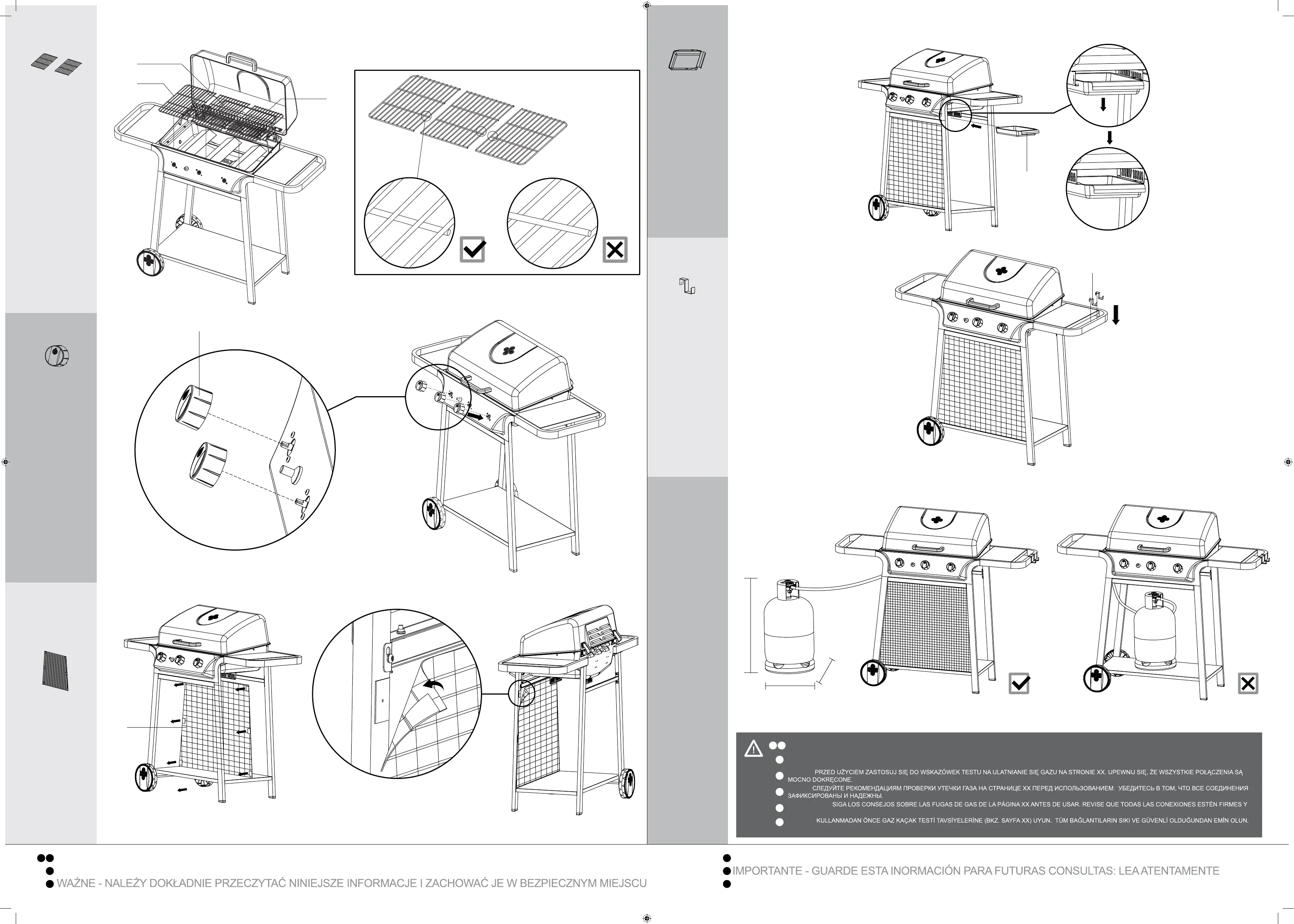 IMPORTANT - FOLLOW GAS LEAK TEST ADVICE IN OWNER’S MANUAL BEFORE USE. ENSURE ALL CONNECTIONS ARE TIGHT AND SECURE.
