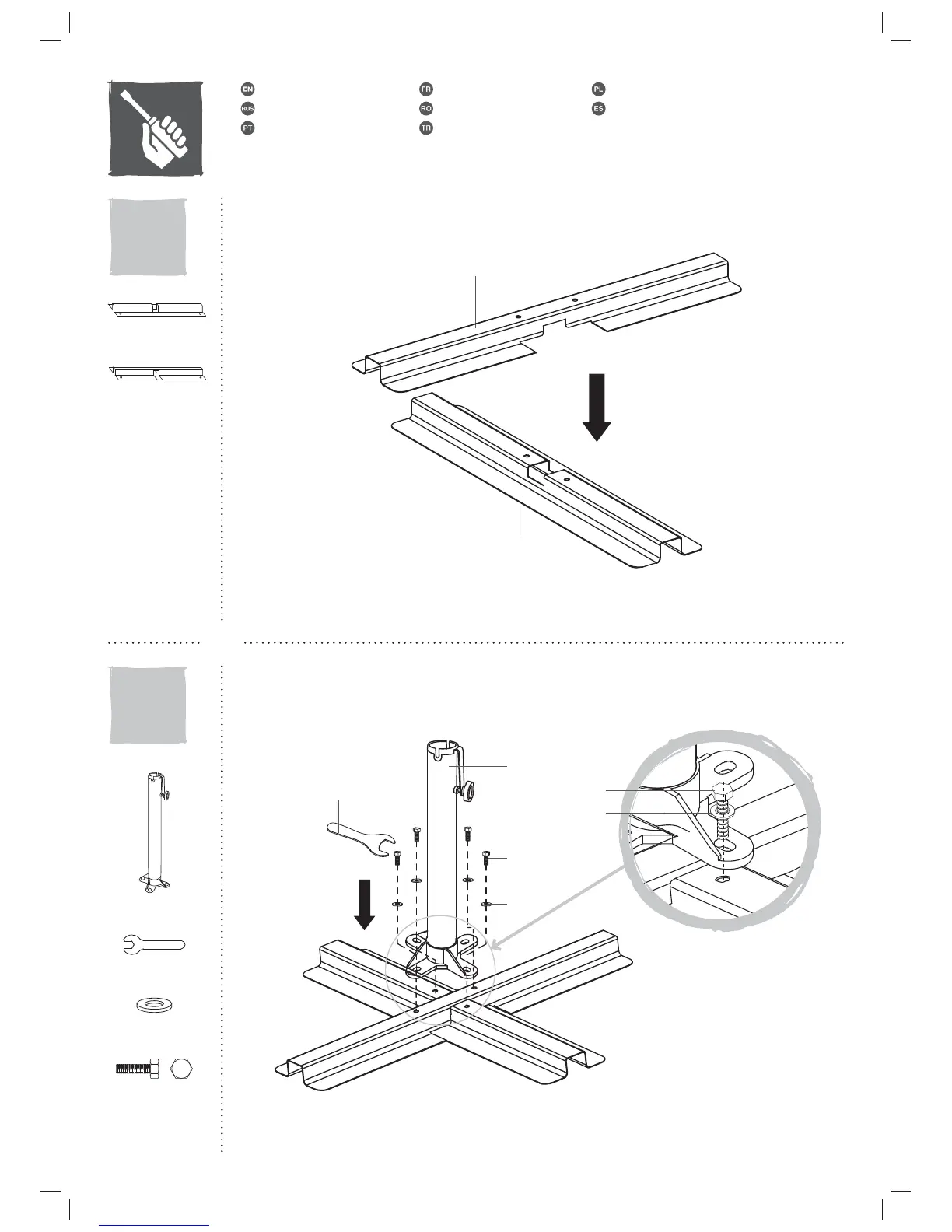 Blooma Malta - Assembly Step 1: Base and Pole; Assemble Base Frame; Attach Pole to Base