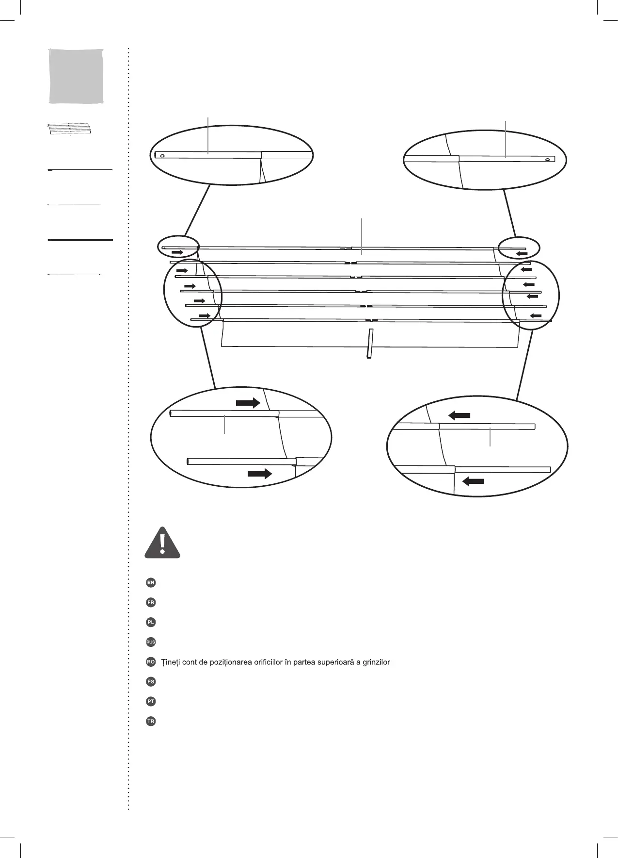 Preste atención a la posición de los agujeros en la parte superior de las barras.