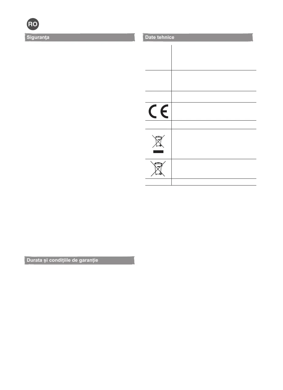 acestui produs. Garanția poate aplicată numai pe baza prezentării bonului scal de casă sau a facturii. Păstrați dovada achiziției într-un loc