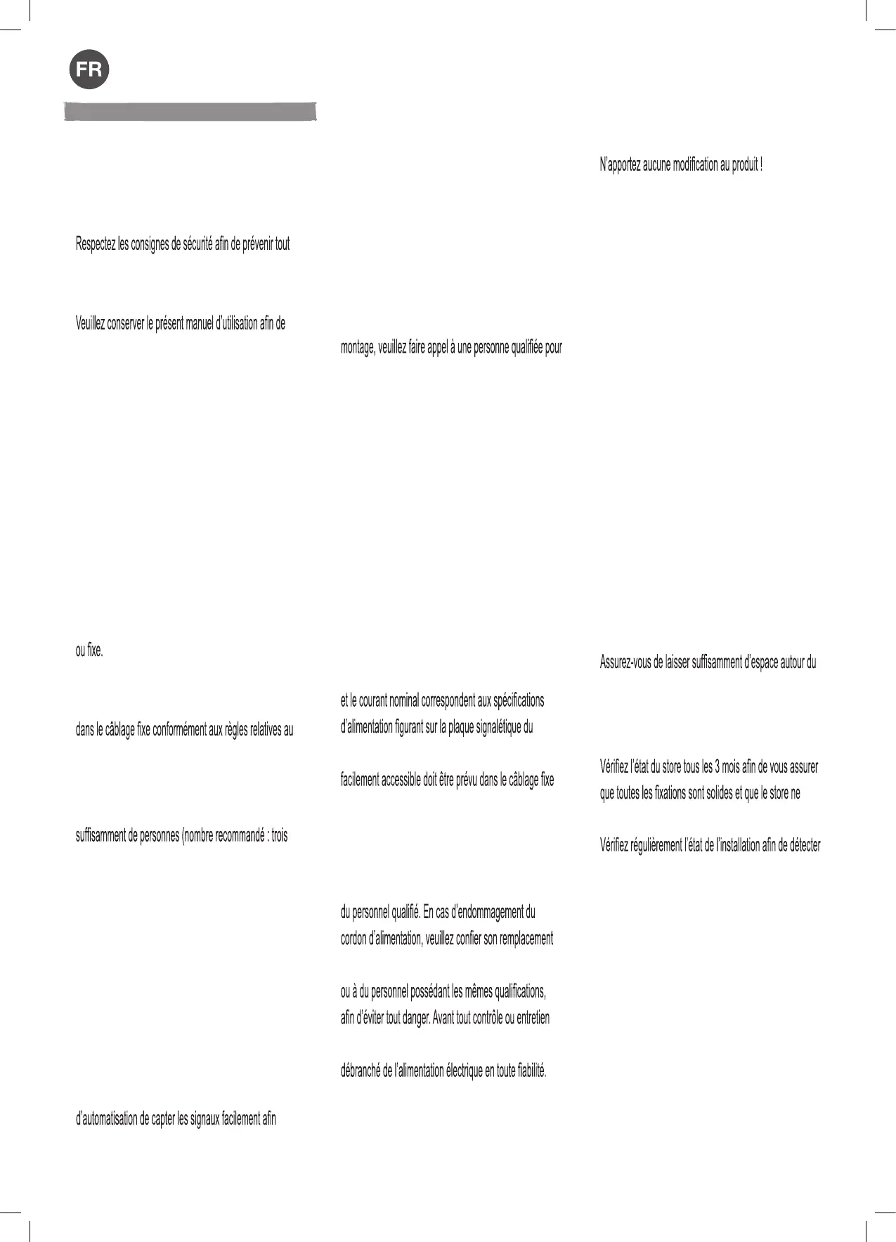 Ne pas utiliser le store dans des endroits soumis à des