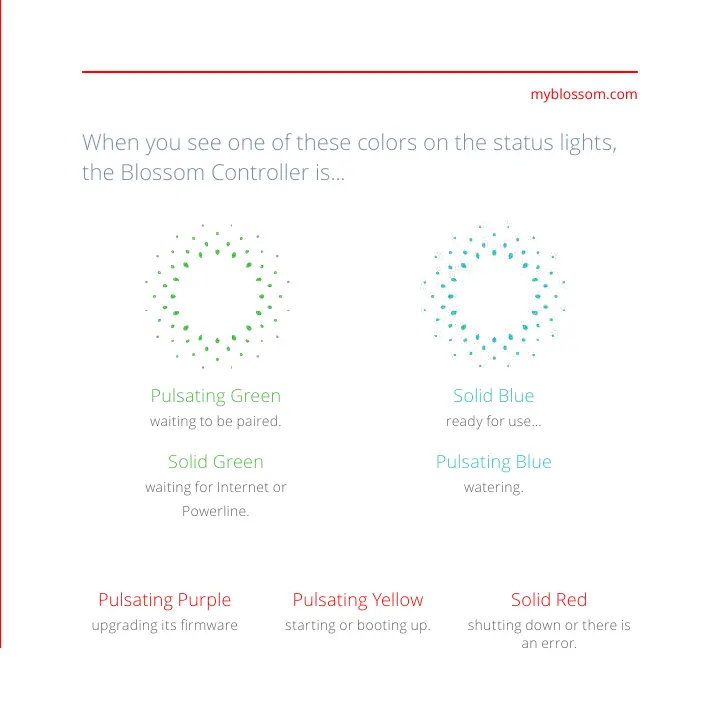 Blossom Smart Watering Controller - Pulsating Green; Solid Blue; Solid Green; Pulsating Blue