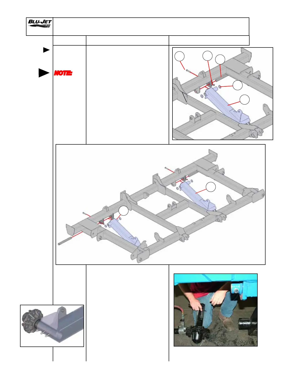 5. Insert spindle into wheel leg.