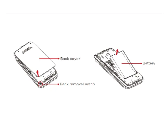 1. Remove the back cover via the notch at the bottom left corner.
