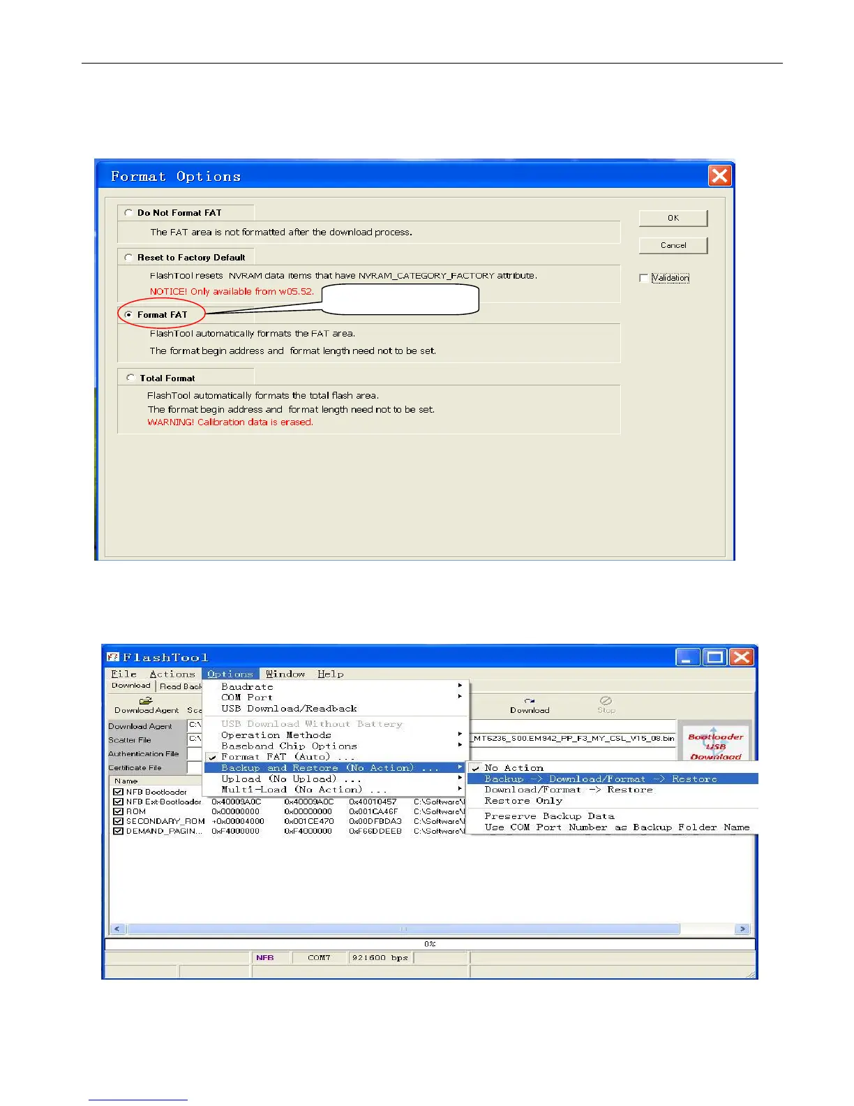 9.1.6 Select “Options”- Backup and Restore, then select the “Backup -> Download/format -> Restore.