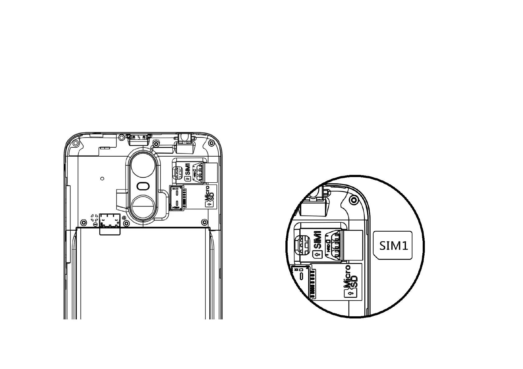 Retire la cubierta posterior. Inserte la tarjeta SIM.