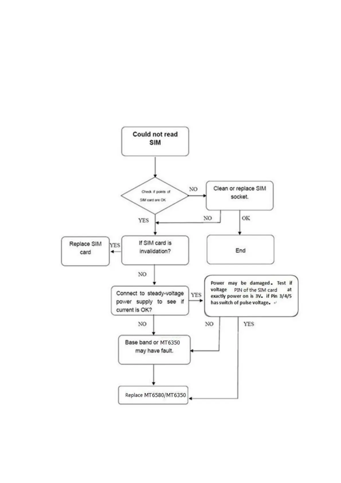 TROUBLE SHOOTING Test flow chart of test SIM card