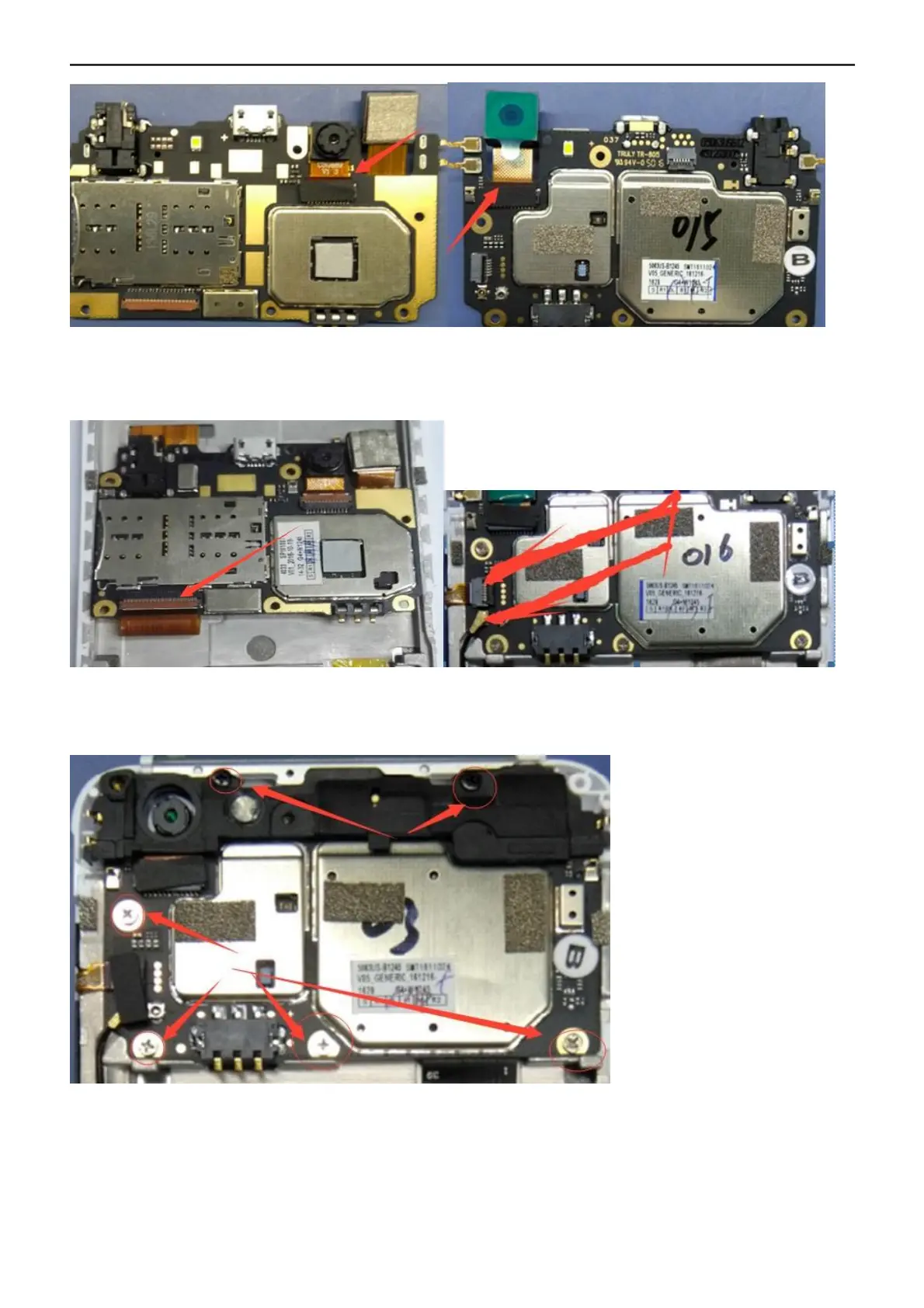 6. Assemble rear camera supporting rack, PCBA supporting screw, and screw on