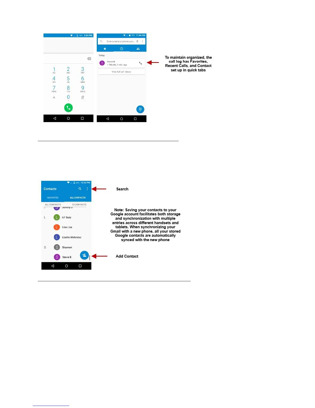 Contacts are organized alphabetically by default.