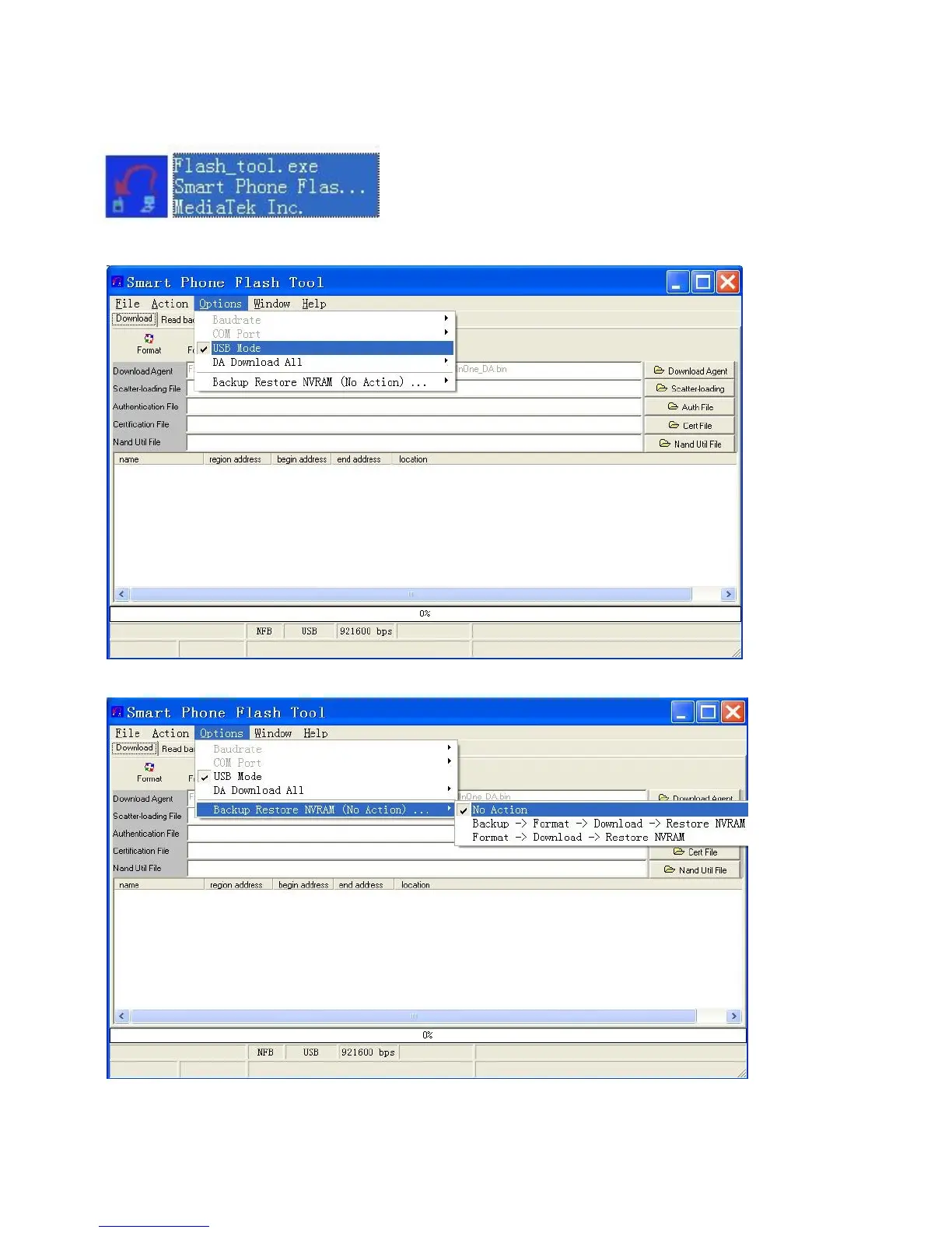 1> Open software upgrading platform’’SP_Flash_Tool_exe_v2.1129.00