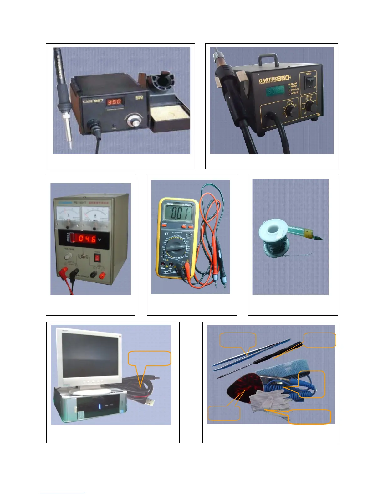 Metal tweezers, Screw driver etc..