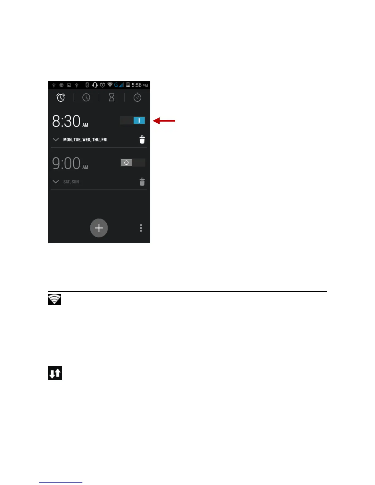 clock set interface. This option allows you to add and edit alarms.