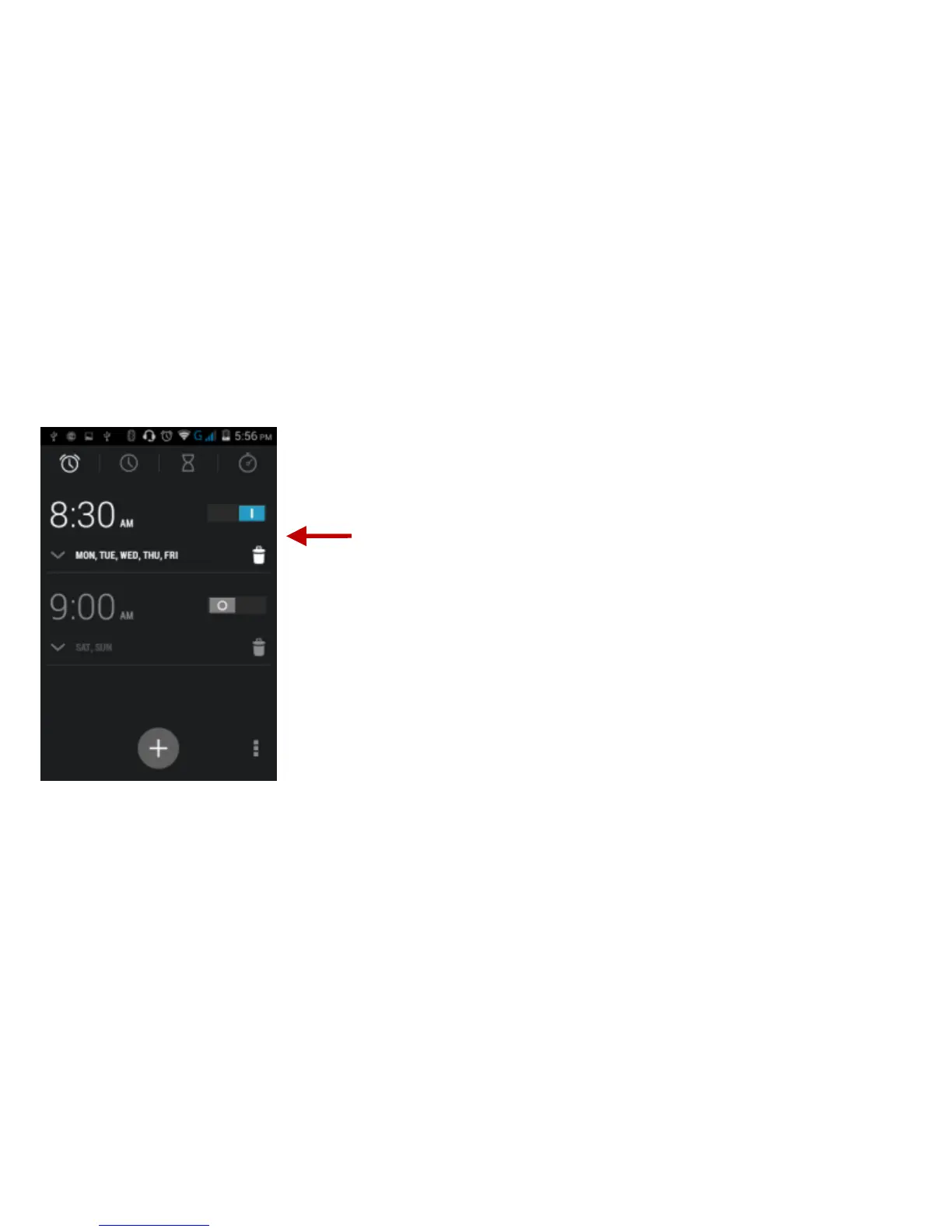 Click on the Clock icon then click the alarm tab to enter the alarm clock interface.