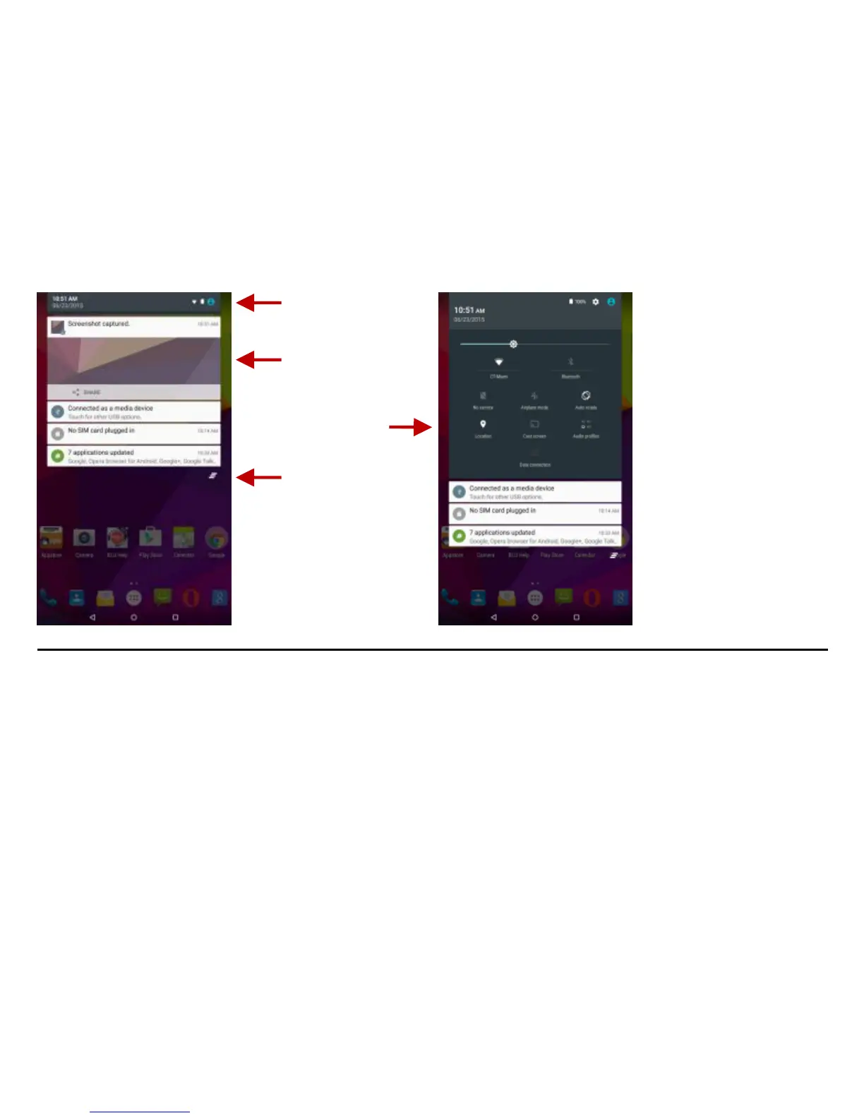right hand part of the notification screen (3 horizontal lines as shown in the figure). The quick notification