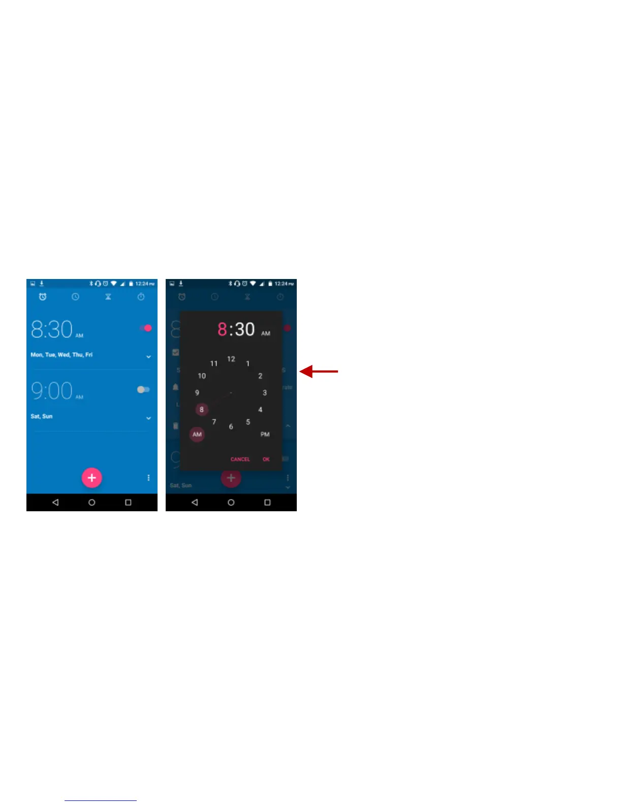 Click on the Clock icon then click the alarm tab to enter the alarm clock interface.