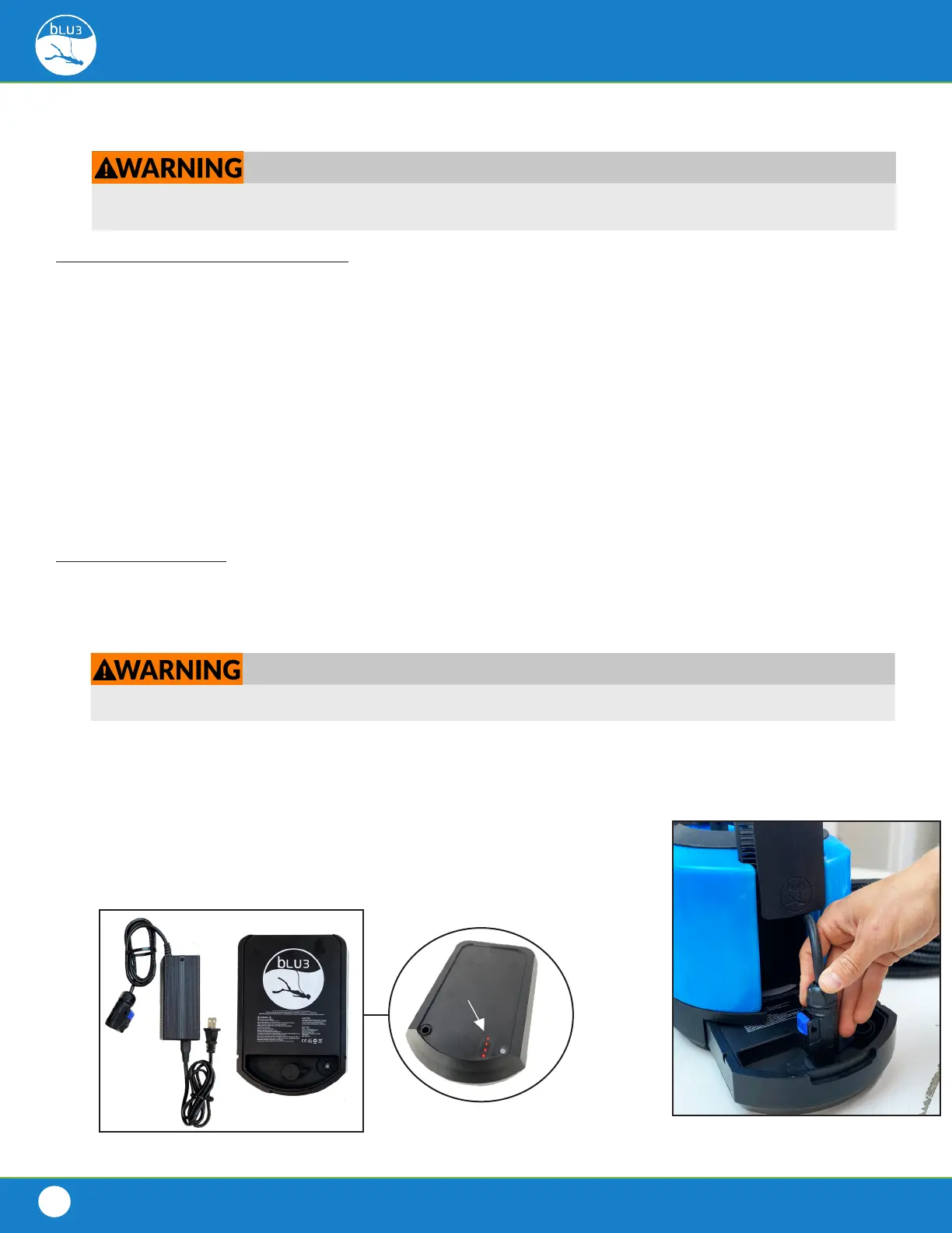 The Baery and Baery Charger show manufacturer’s warnings that must be read and understood by the user.