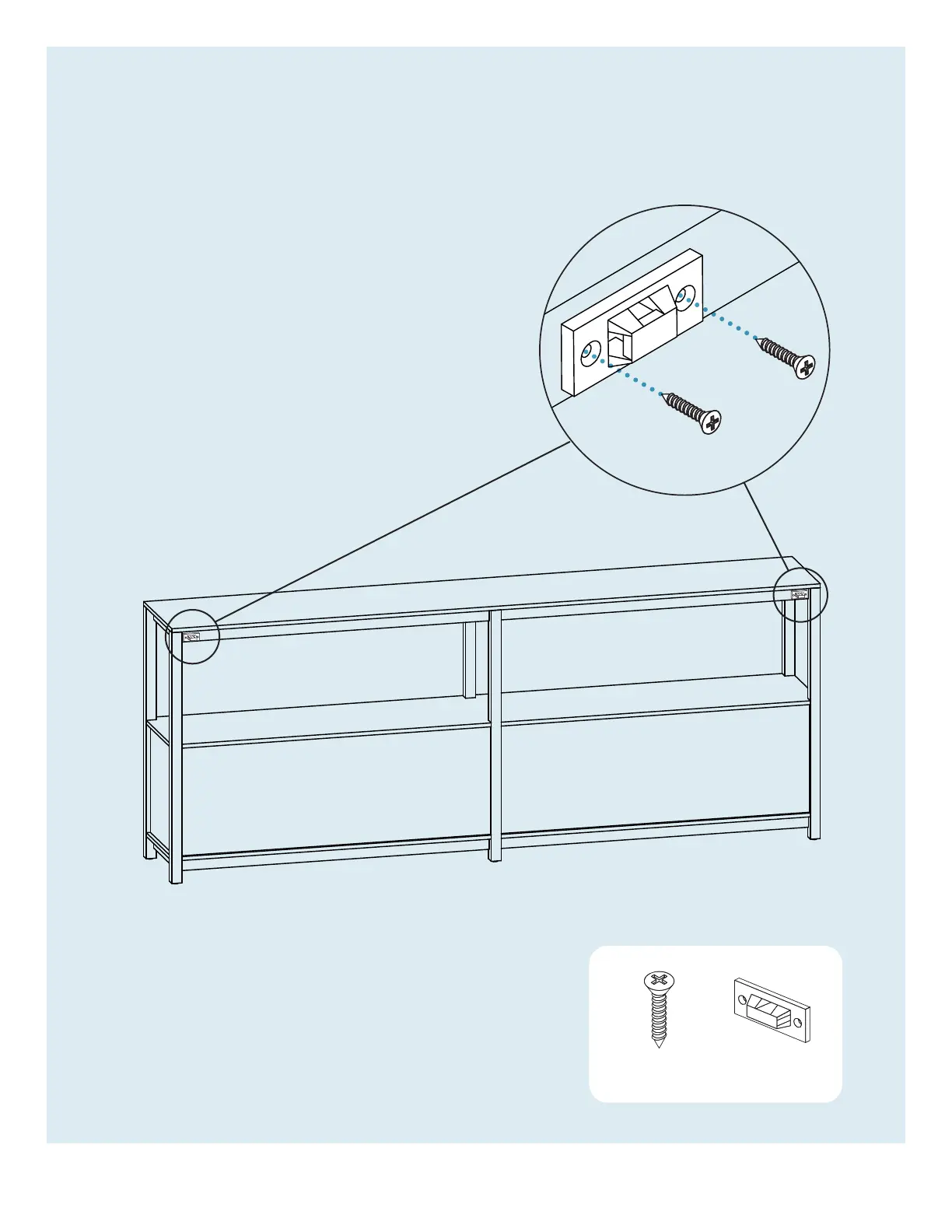 ATTACH ANTI-TIP BRACKET TO BOOKCASE.