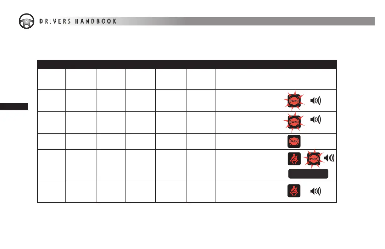 The seatbelt warning light and audible alarm are active when the requirements are met based on the chart below: