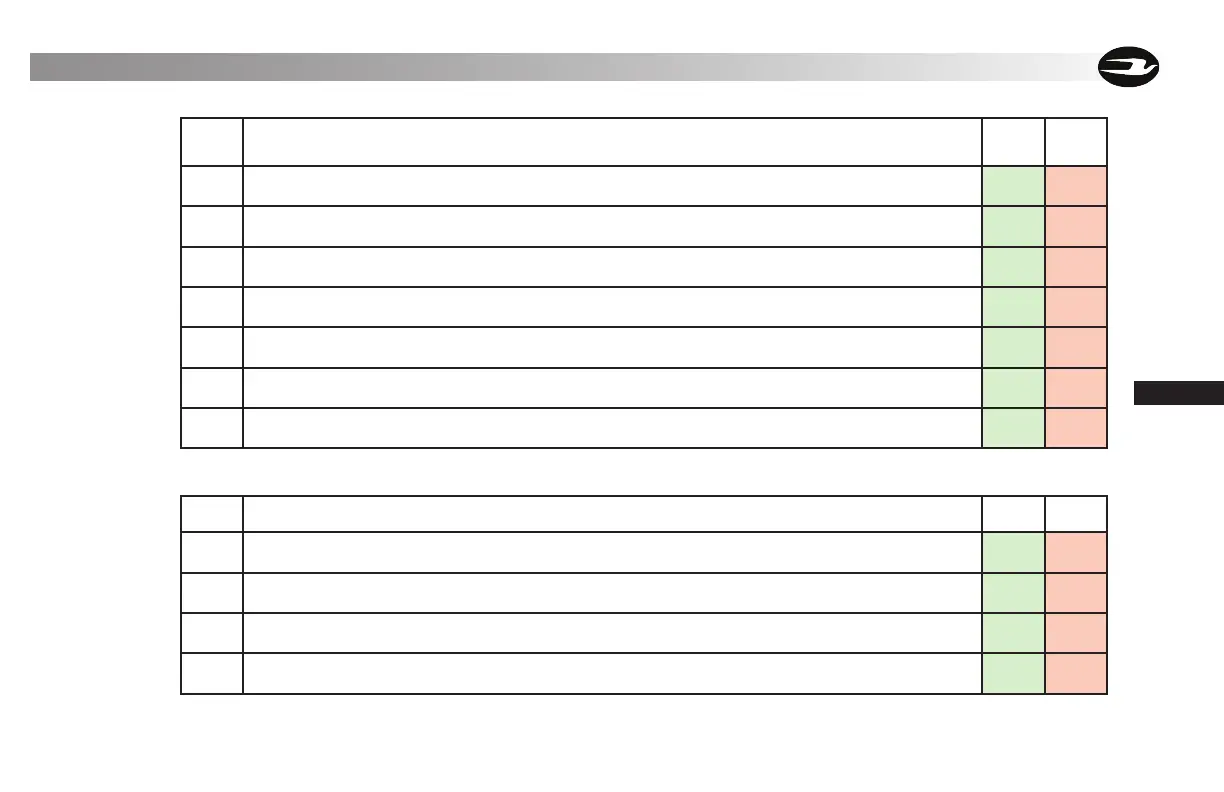 3 Check the condition of each seat and seat barrier, window, and oor area between seats.