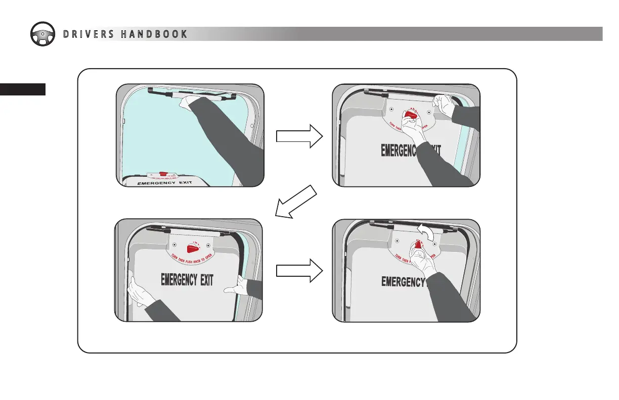 Turn the red knob to the position labeled “LATCHED.Grasp the two handholds on the sides of the hatch and pull