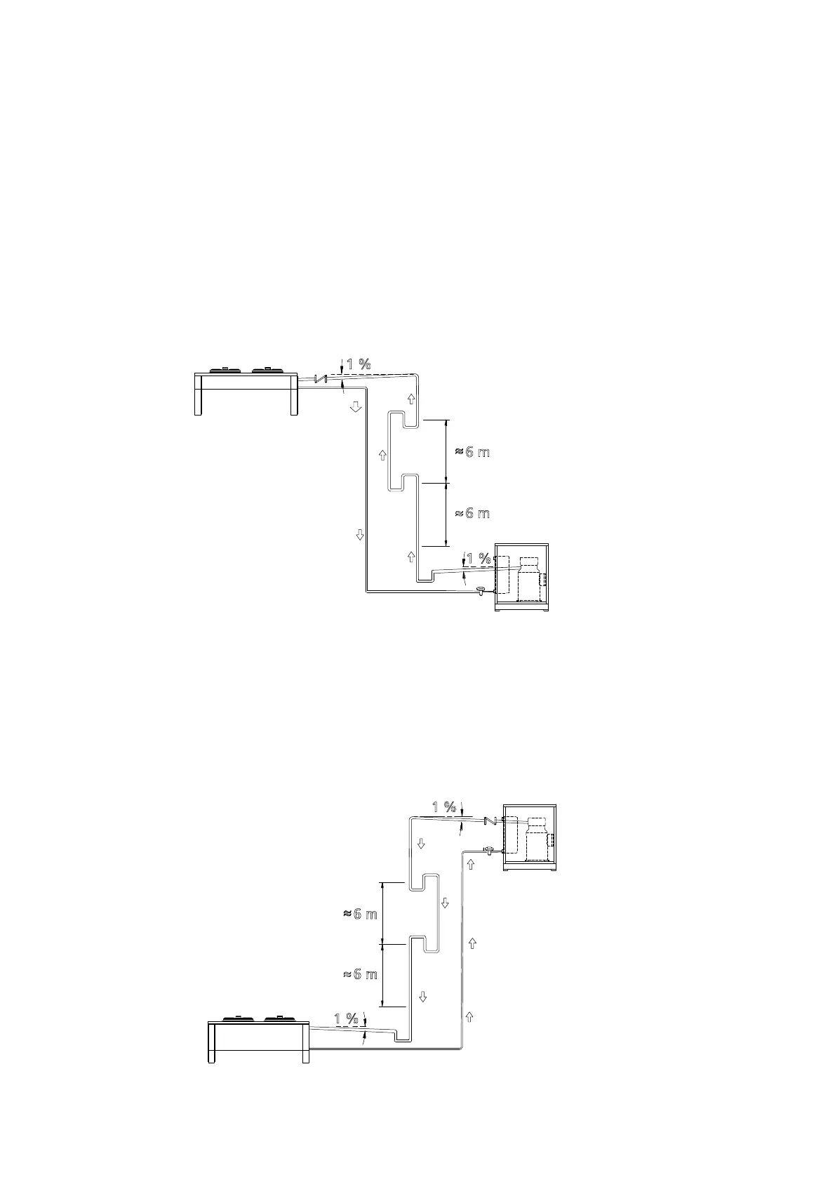 c) Ensure that there is a gradient of at least 1% on horizontal sections of the refrigerant lines to facilitate oil
