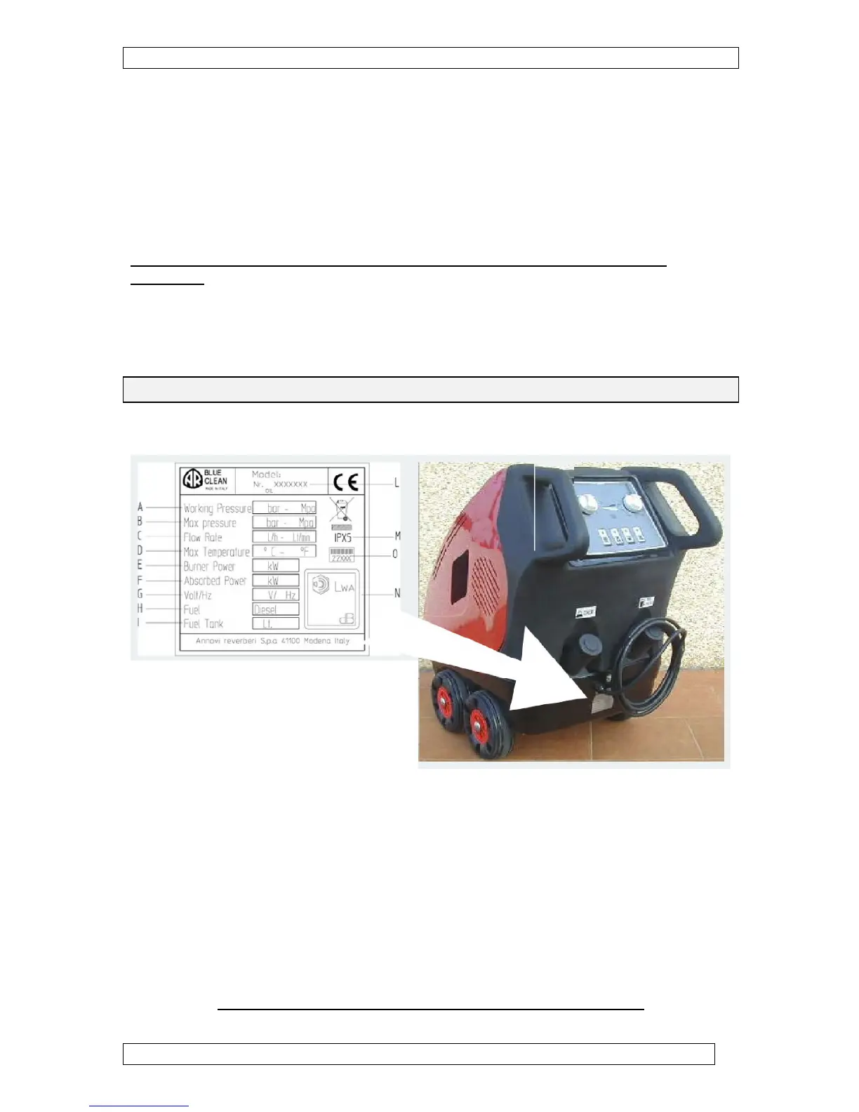 Before starting, be sure that it is supplied with the relevant identification rating plate;