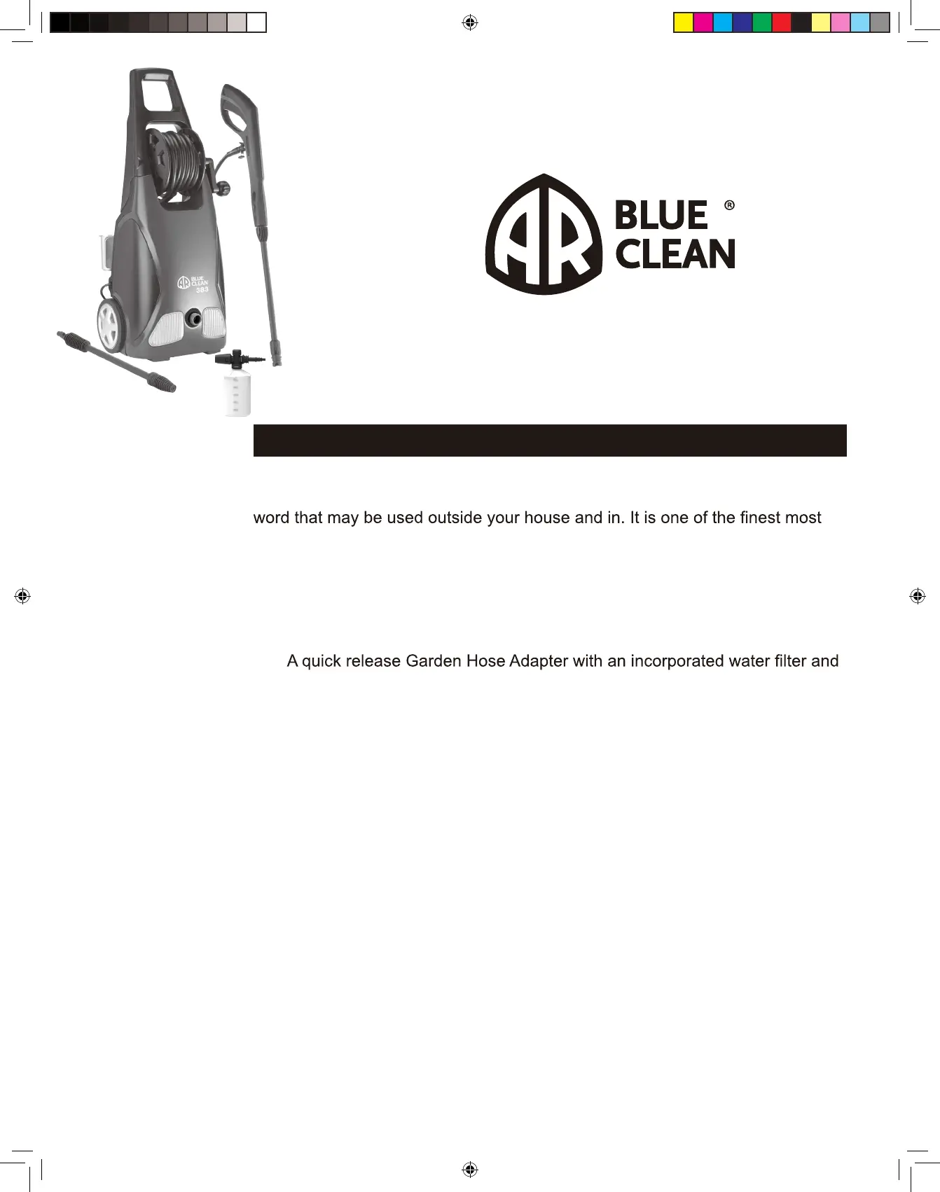 Congratulations on the purchase of your BLUE CLEAN POWER WASHER!