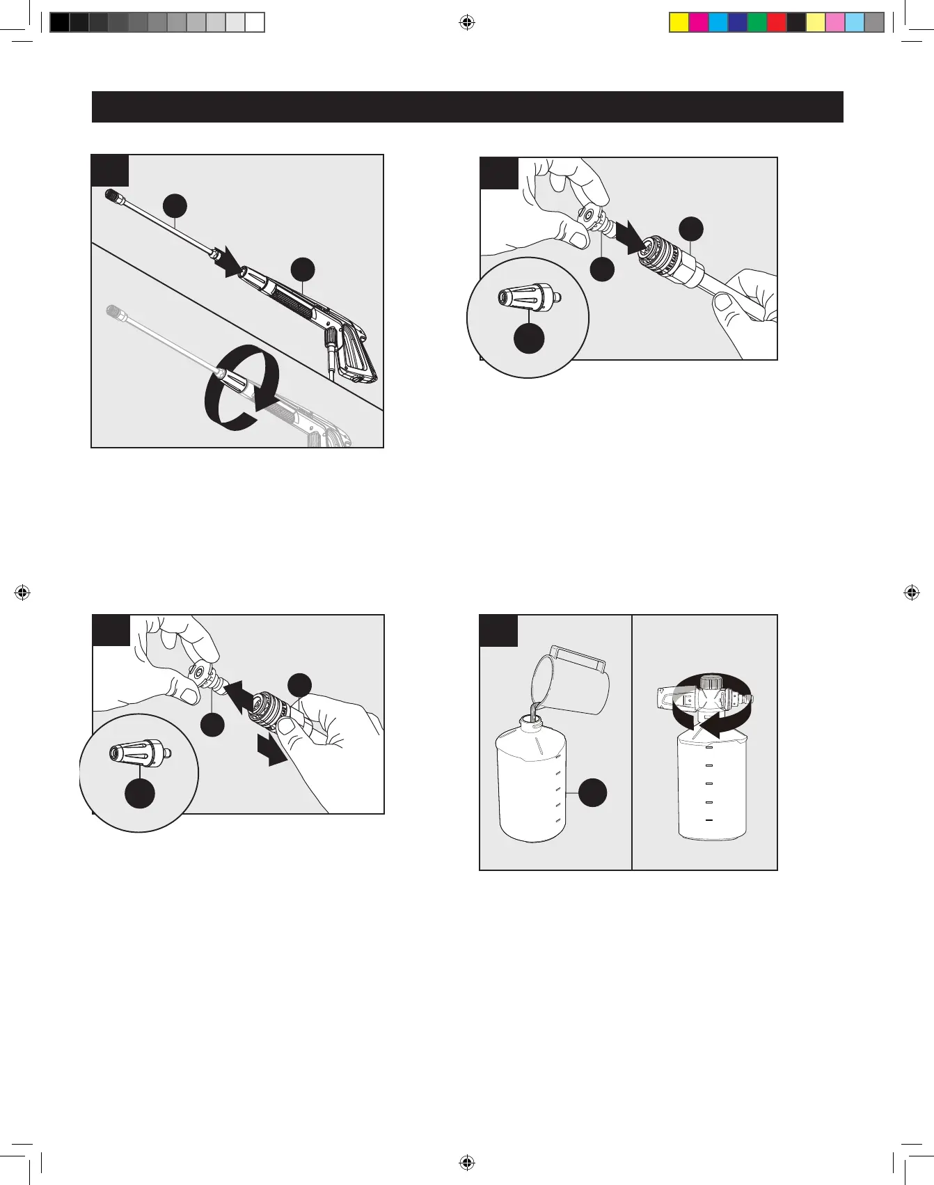 Attach nozzle (E) and Rotary nozzle (*C) into end of
