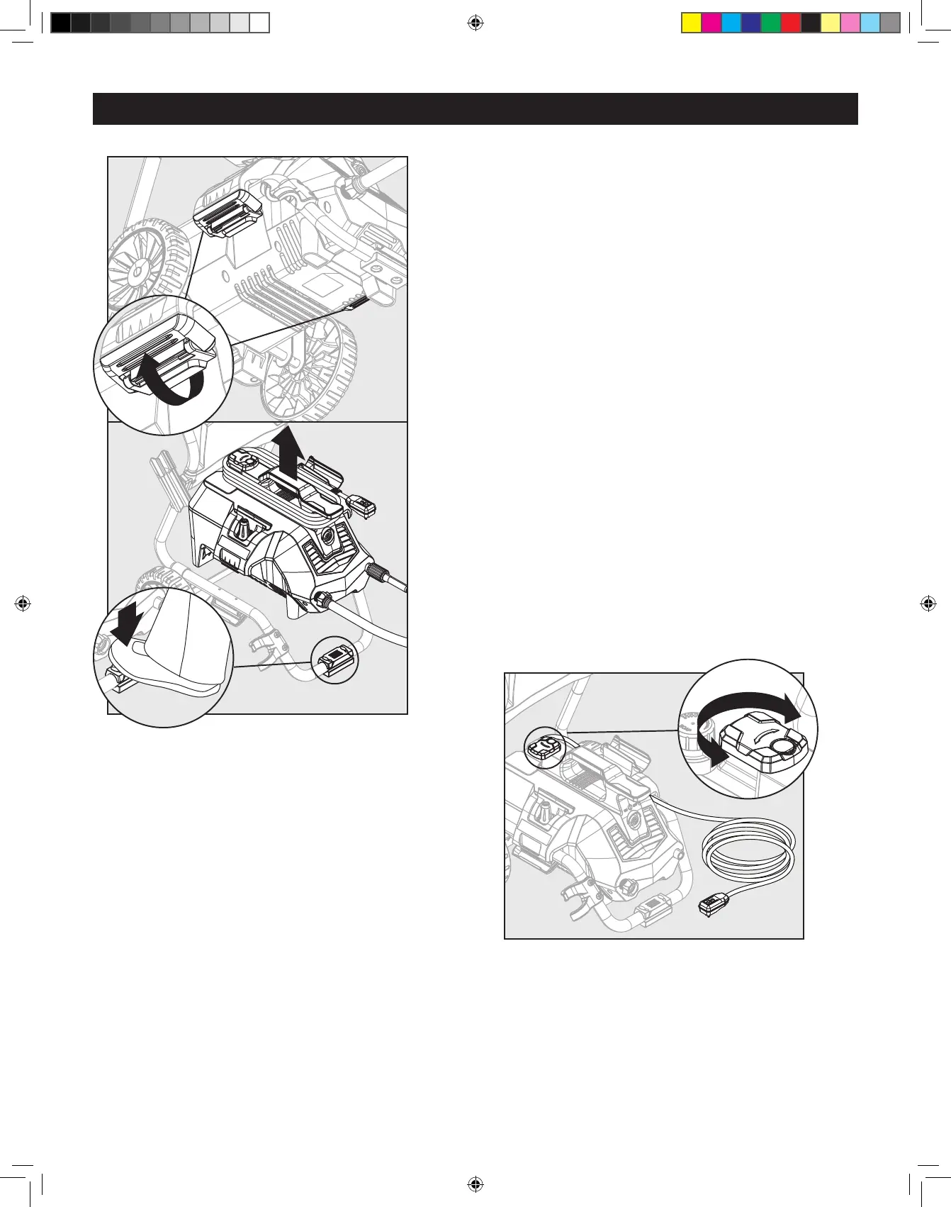 • Swivel cord hook back to center when ready to wrap