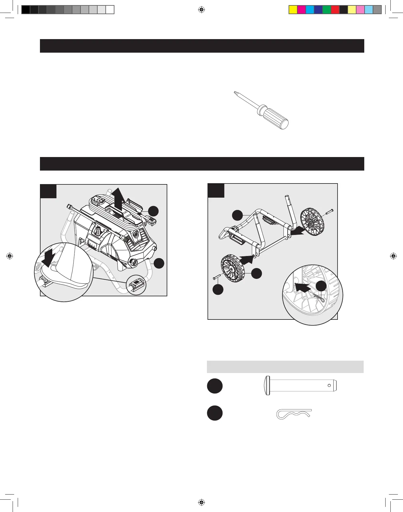 the frame. Set pressure washer (F) to the side.