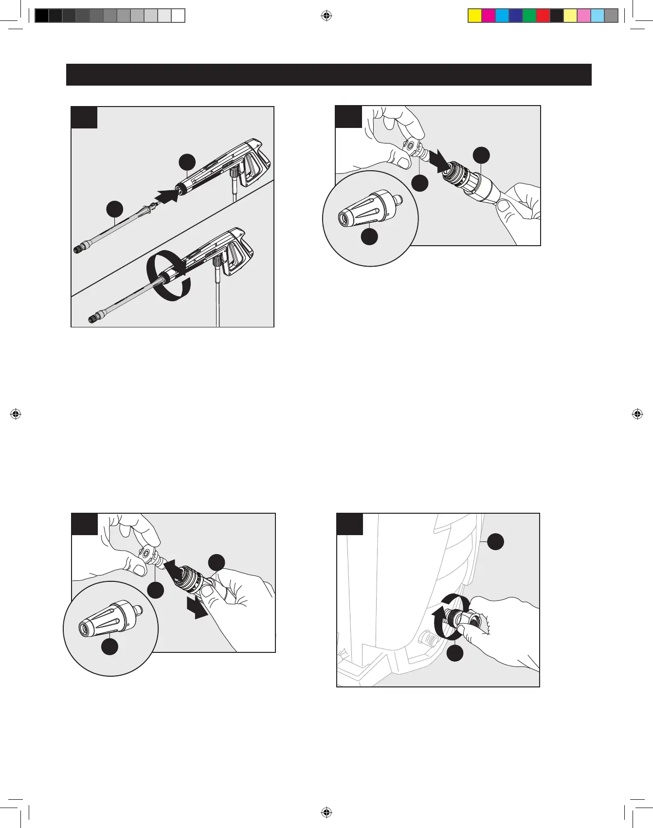 Attach nozzle (H) or rotary nozzle (O) into end of lance