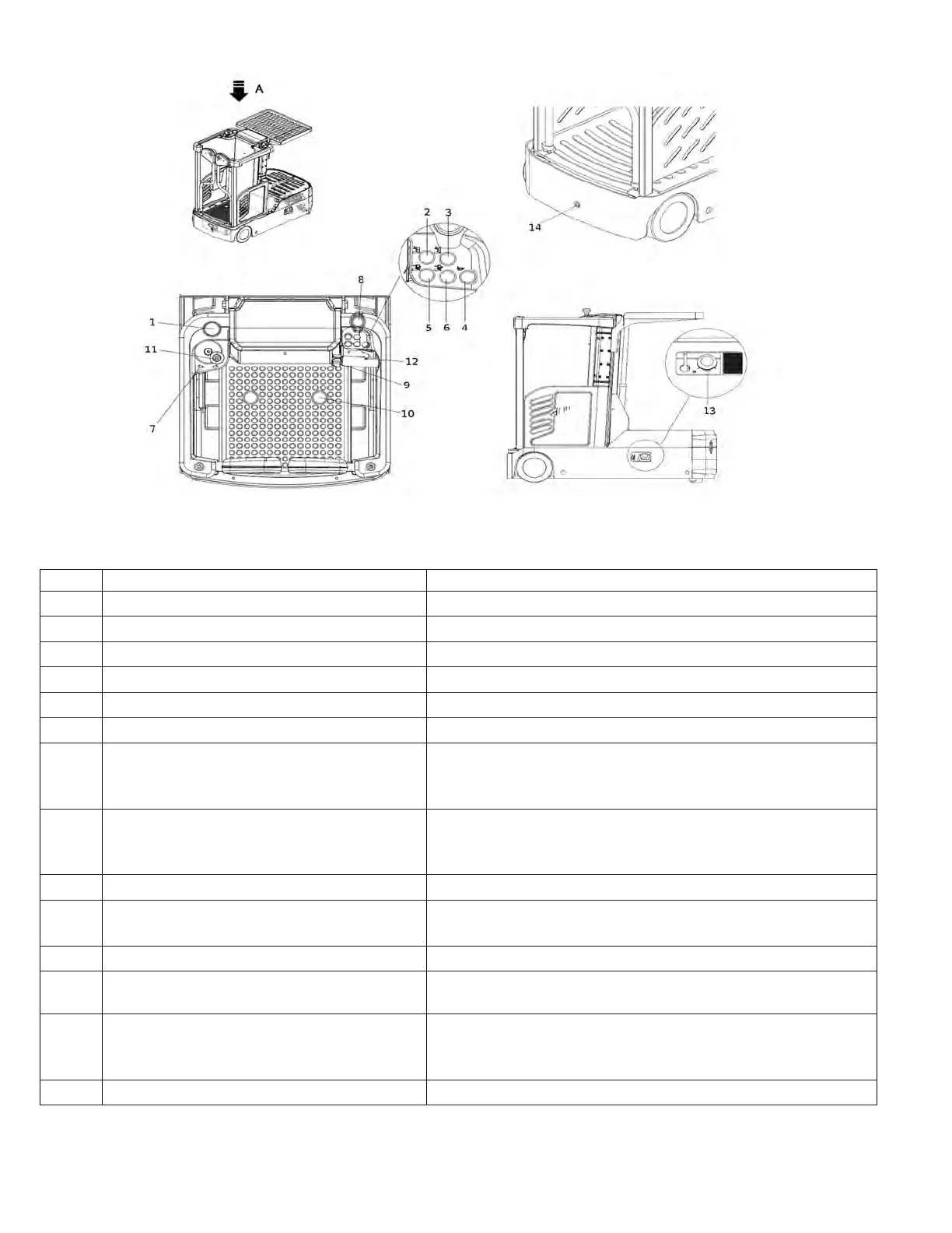 3 Lowering button (tray) Lower the storage table.