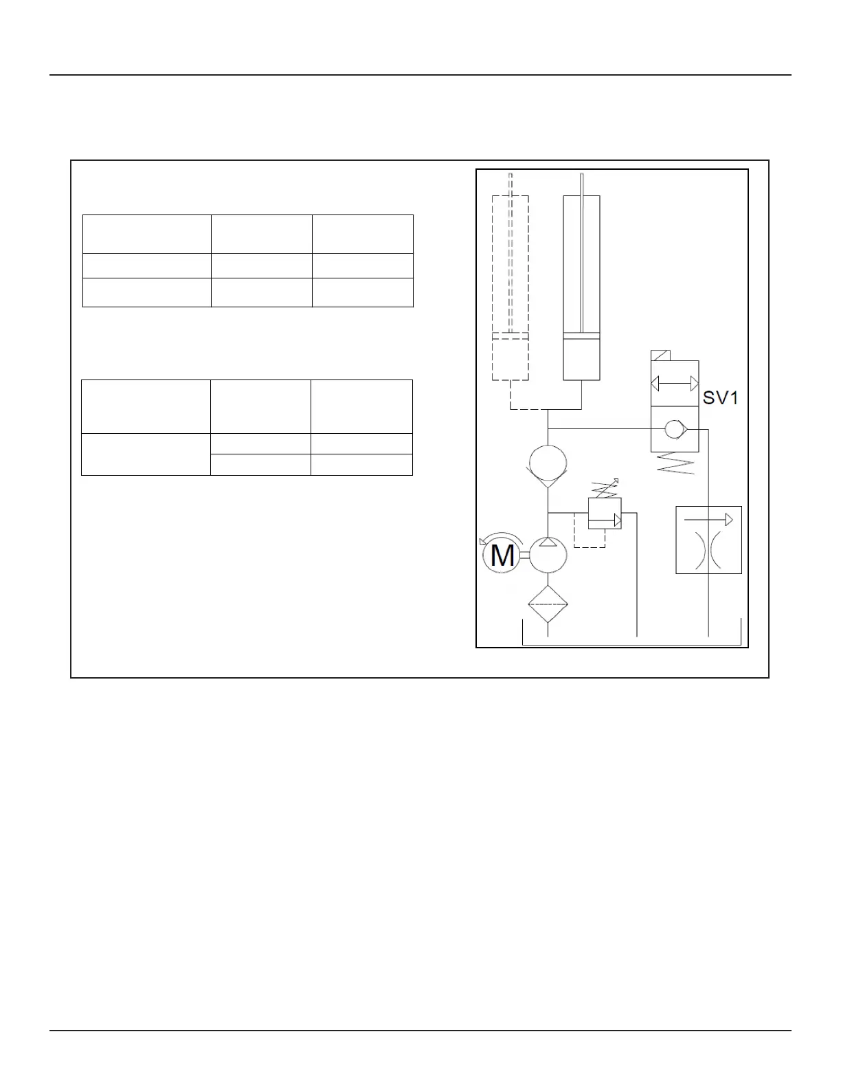 This diagram illustrates a sample (lift power up and gravity power down) Powerpack hydraulic circuit.