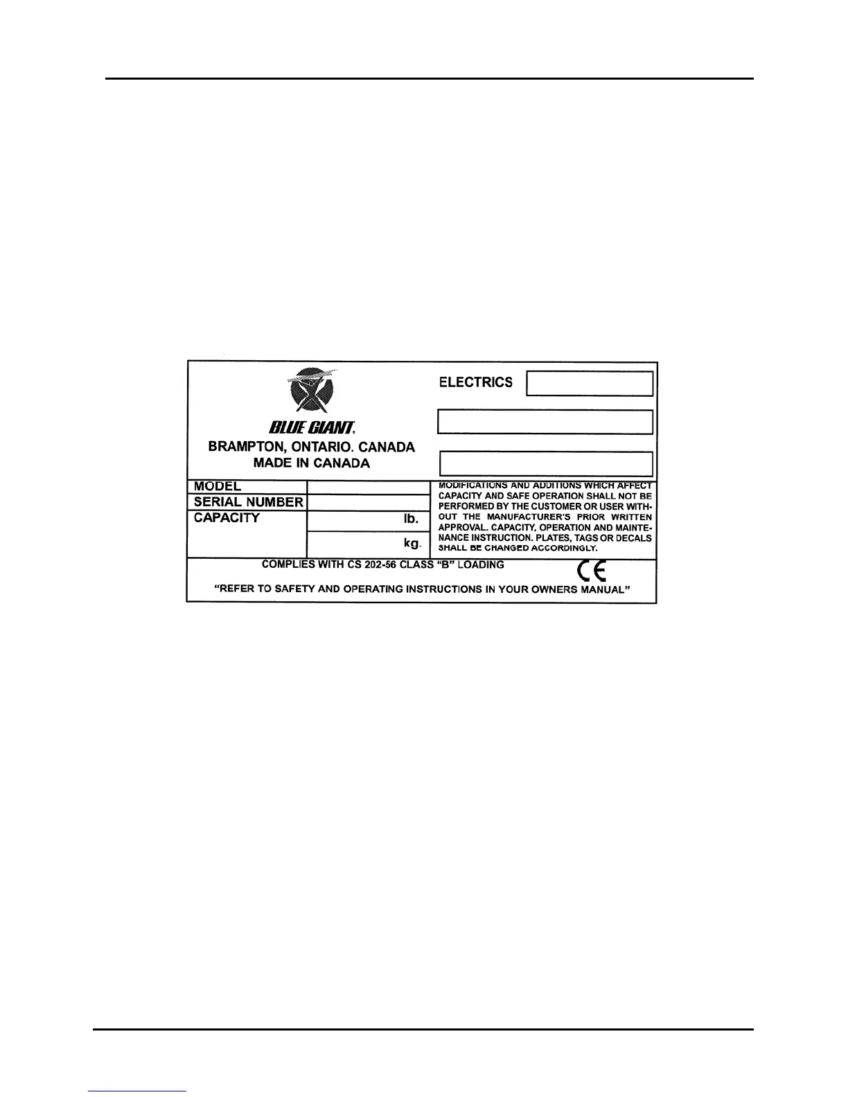 Blue Giant dock levelers are identified by information located on