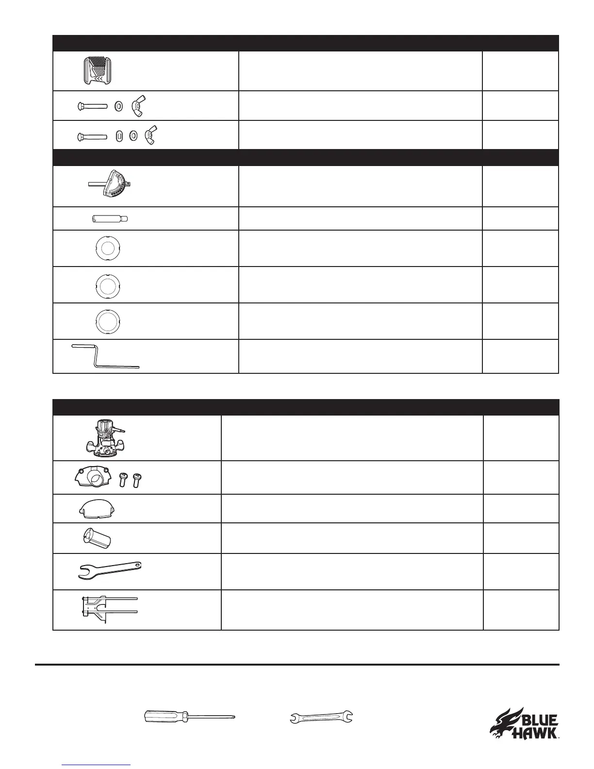 PARTS FOR ROUTER DESCRIPTION QUANTITY
