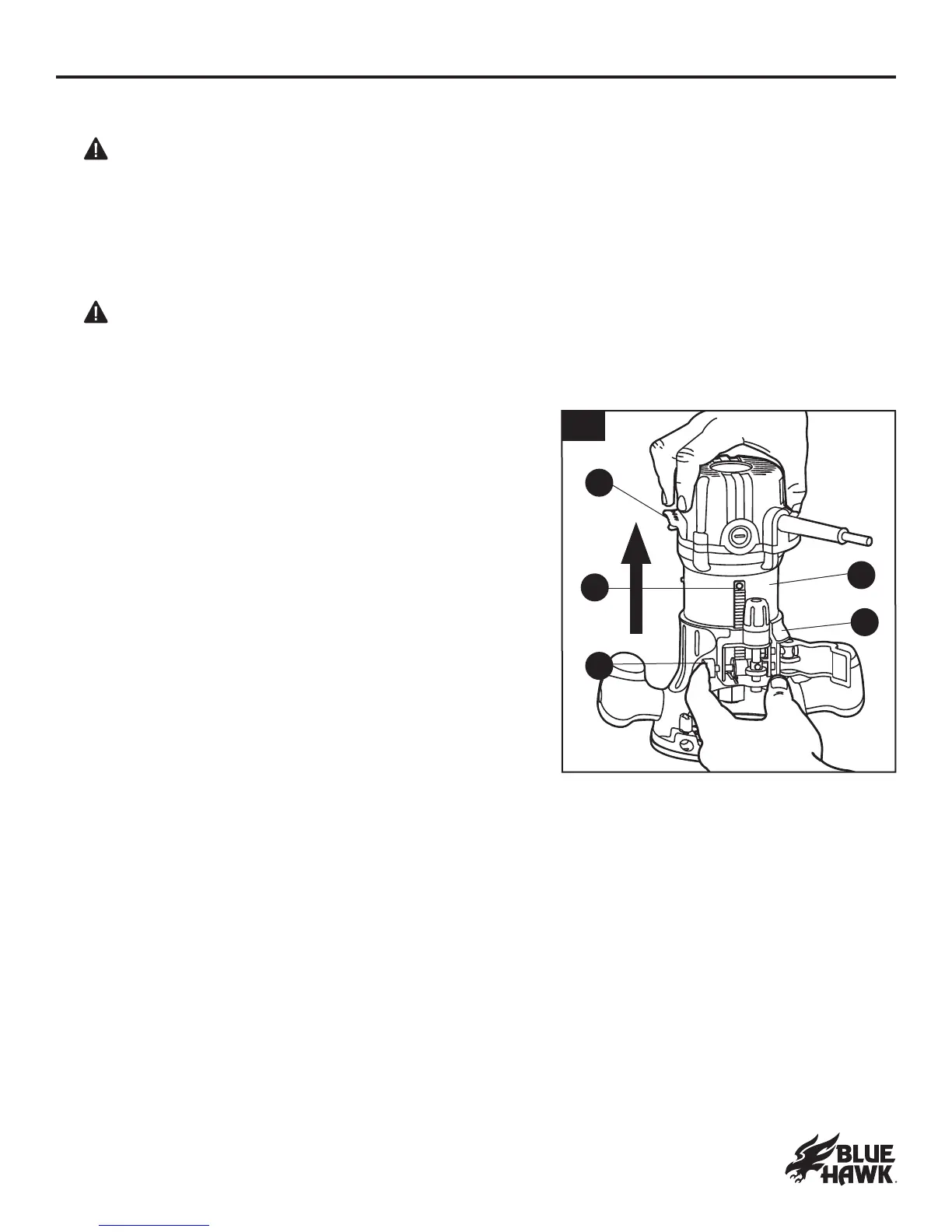 WARNING: D o n ot u se r ou t er cu t t er b i t s t h a t h a v e a cu t t er b i t d i a met er l a r g er t h a n 1 - 1 / 4 " ,