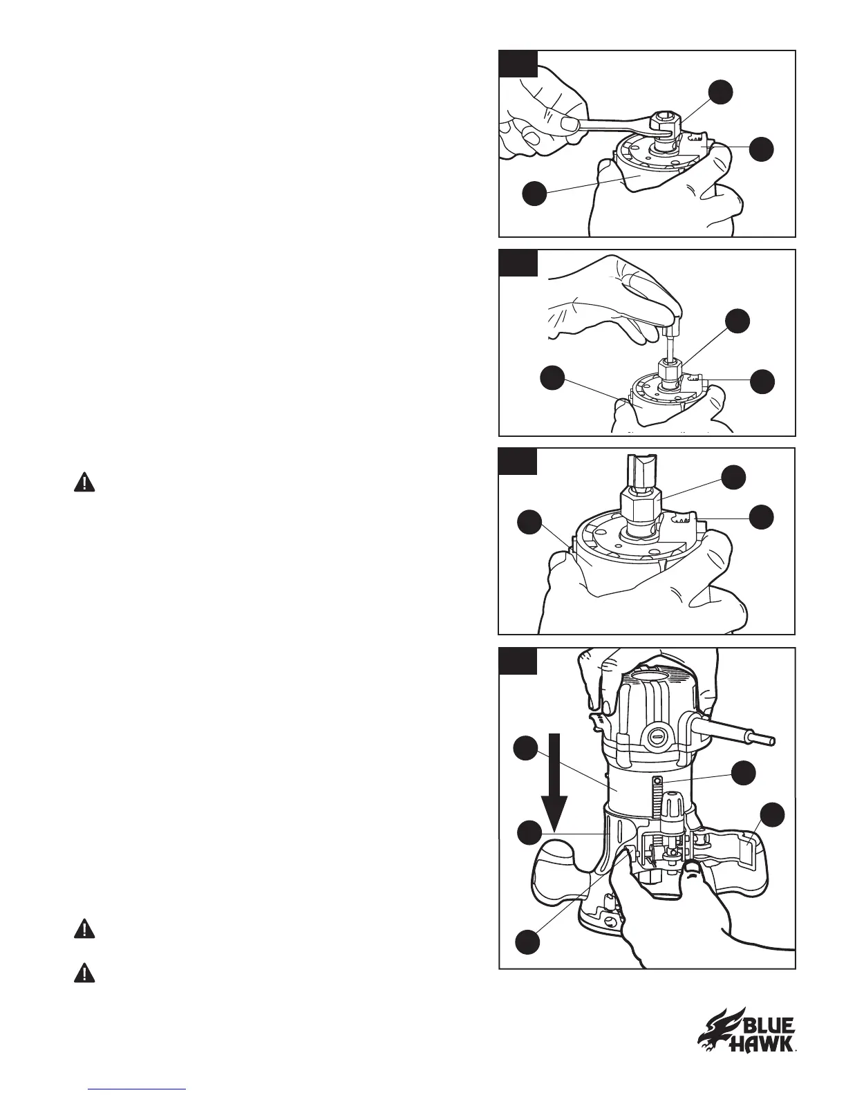 e. I n ser t t h e cu t t er b i t sh a n k i n t o t h e col l et / n u t so t h a t