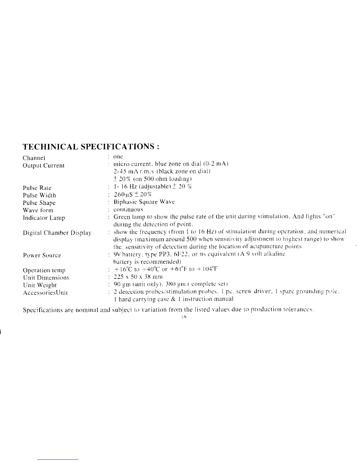 TECIIINICAL SPECIFICATIONS