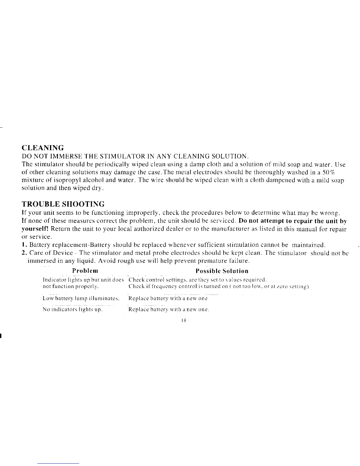 NOT IMMERSE THE STIMULATOR IN ANY CLEANING SOLUTION.
