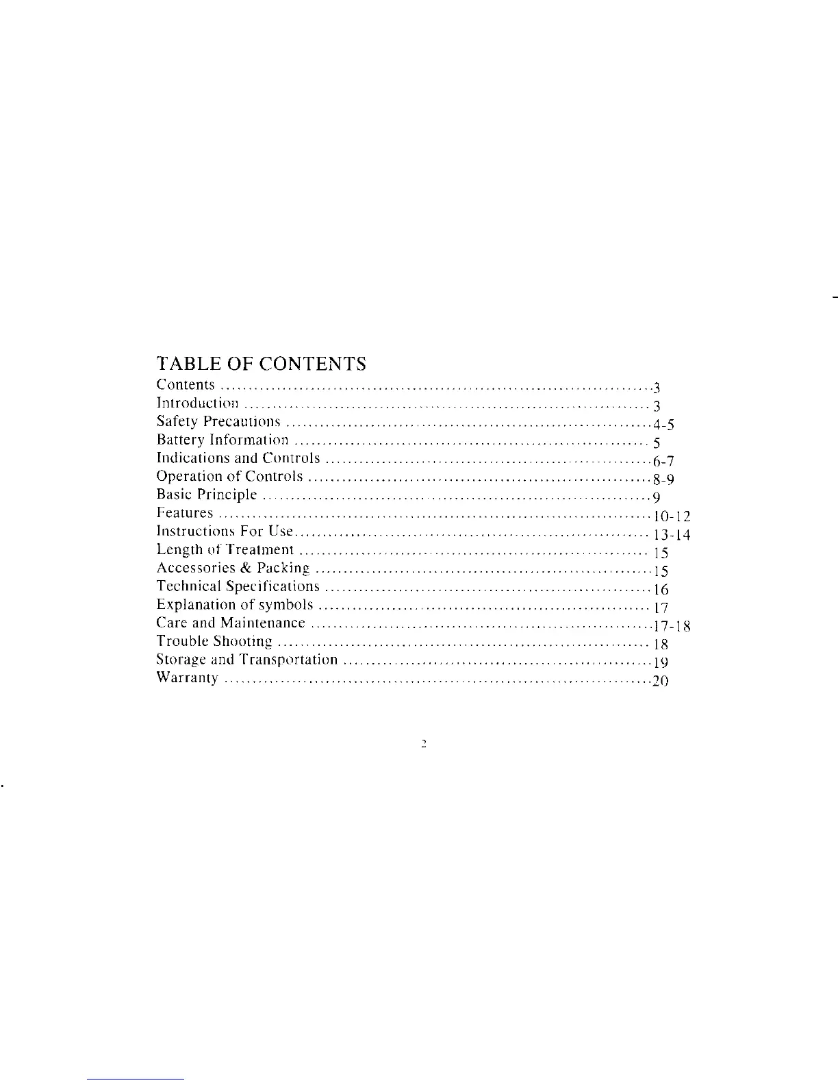 Blue Moon Health Source POINTER EXCEL II - Table of Contents
