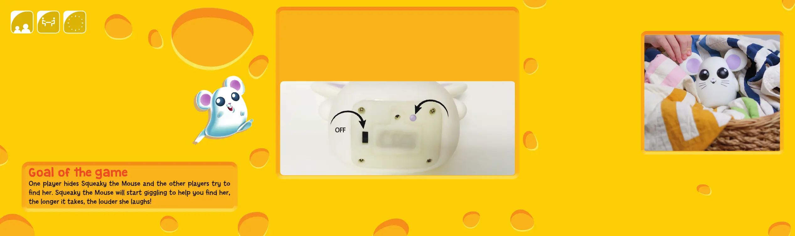 Players gather around Squeaky the Mouse. Turn the switch On. Squeaky will