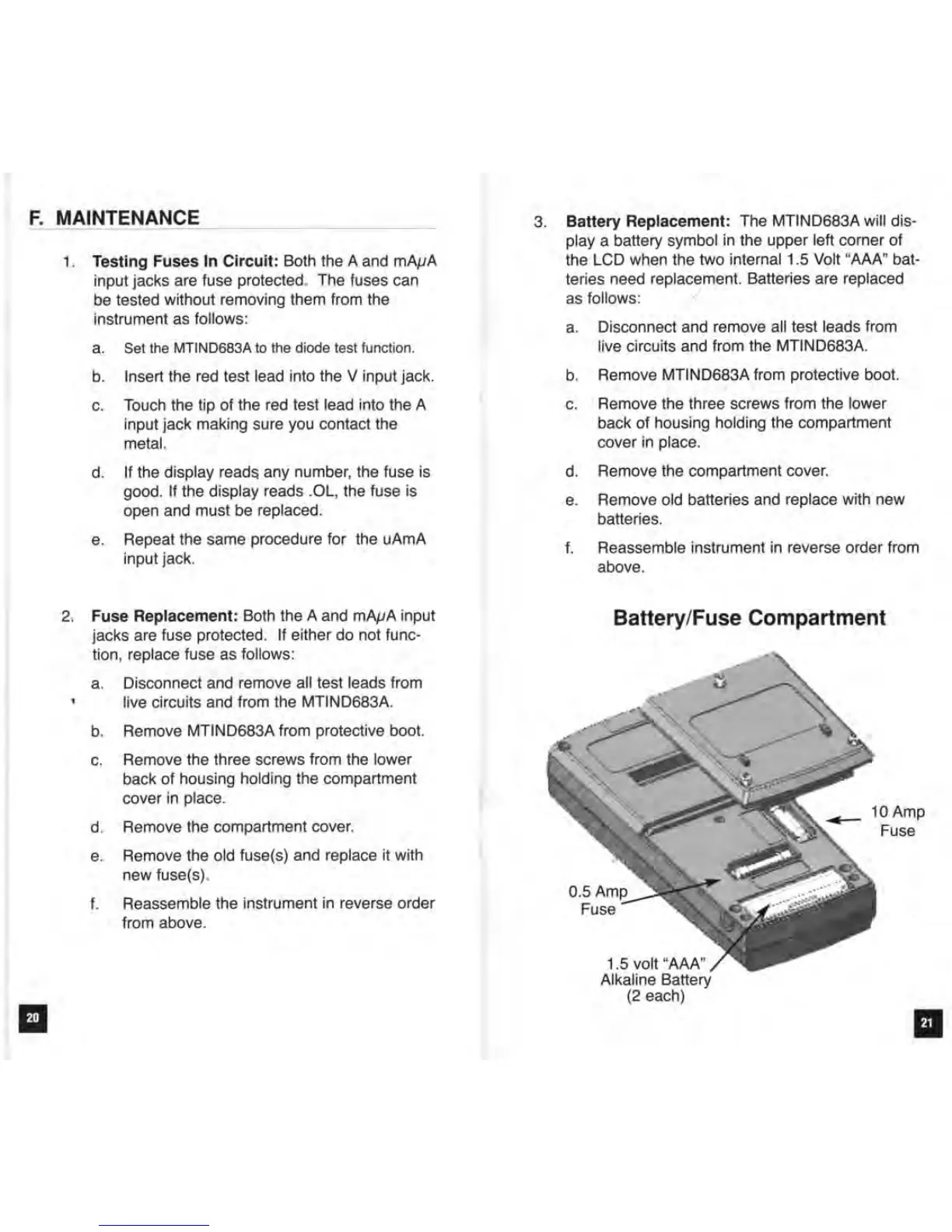 Blue point MTIND683A - Maintenance and Troubleshooting; Fuse Testing and Replacement; Battery Replacement