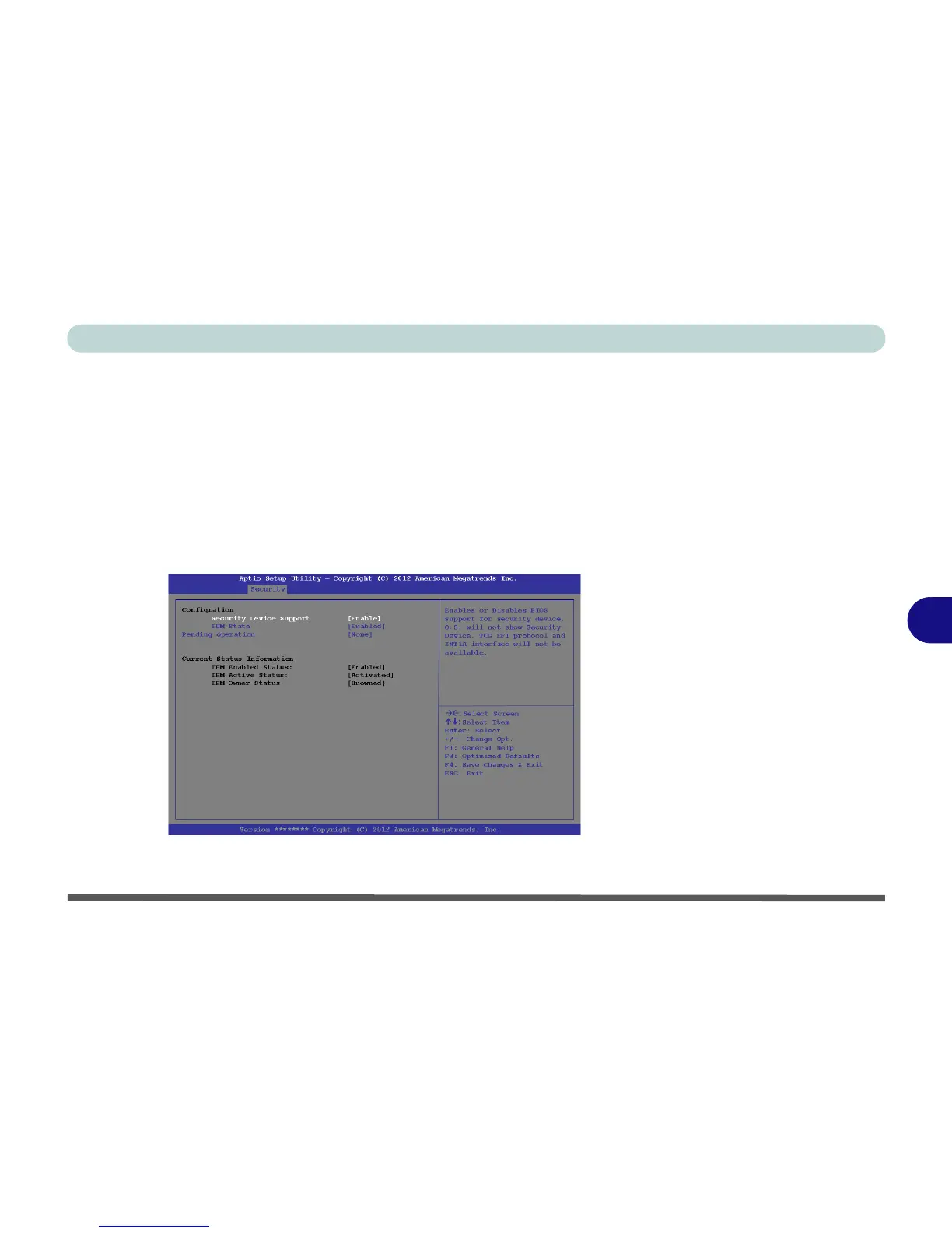 5. Press Enter to access the Security Device Support menu and select Enable to