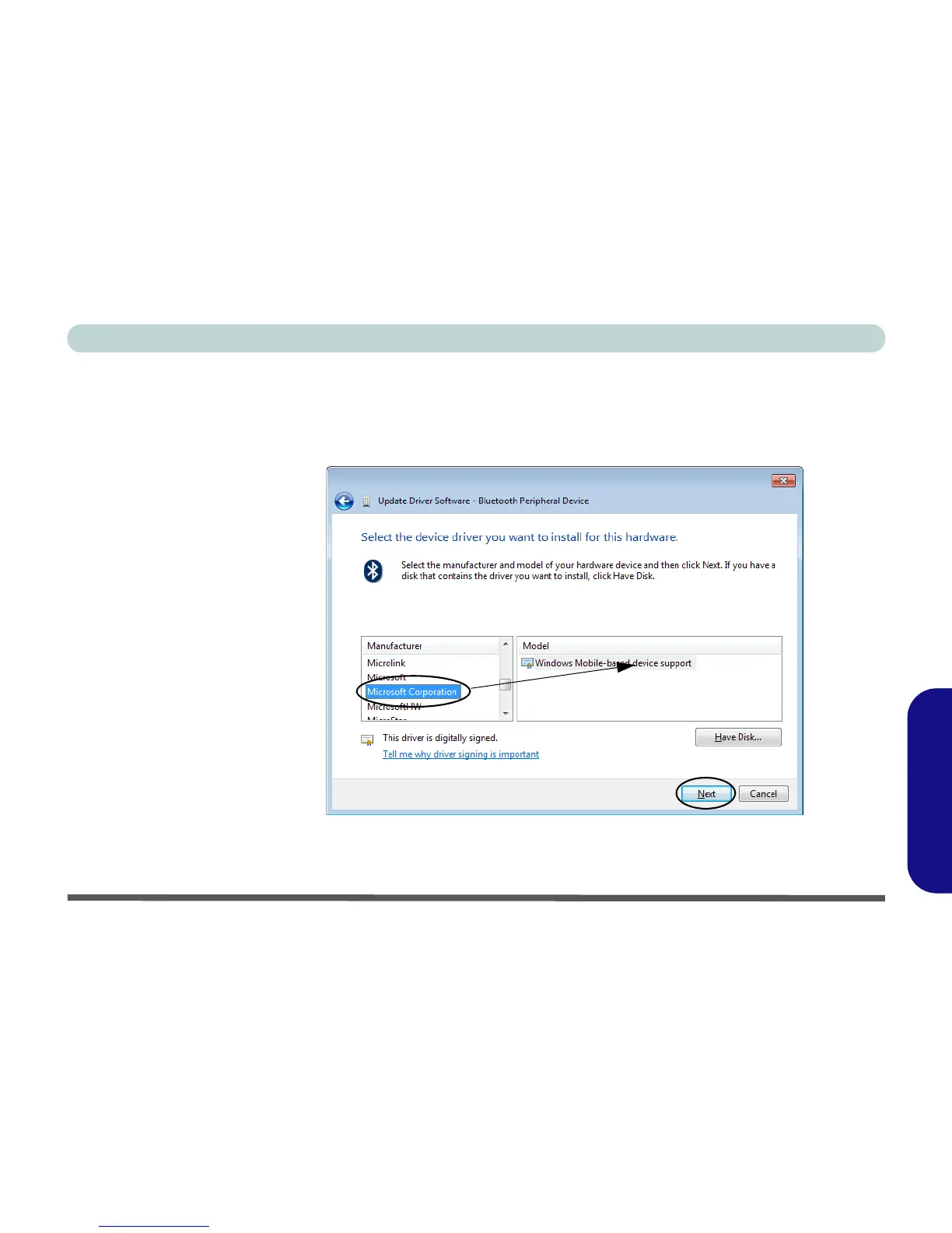 choose Microsoft - Note that you must have installed the Microsoft Windows Device Center Driver for