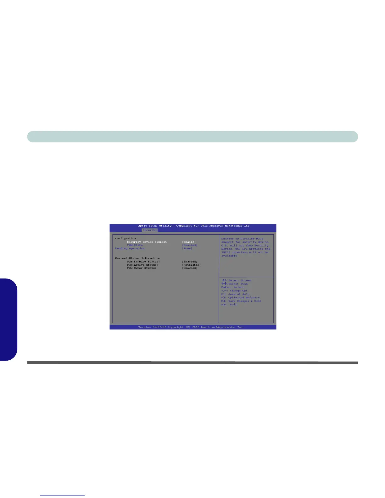 5. Press Enter to access the Security Device Support menu and select Enable to display the full TPM