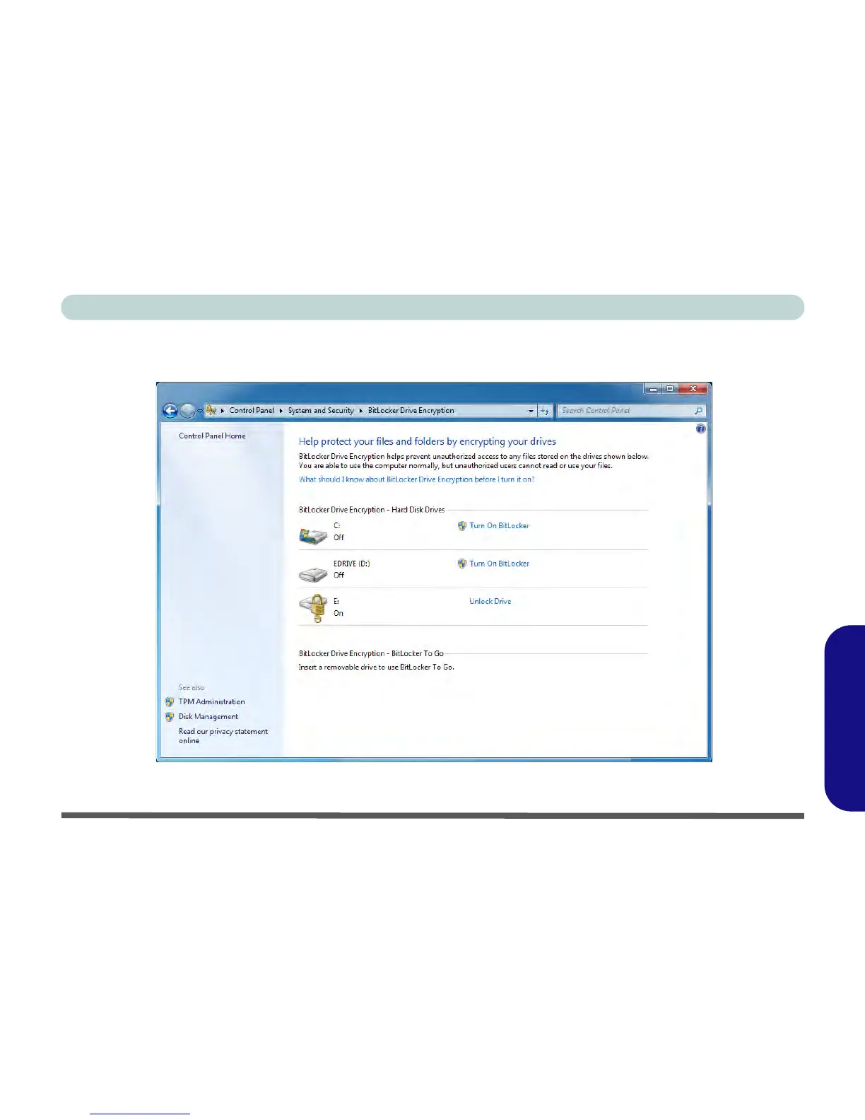 Access the Microsoft BitLocker Drive Encryption control panel applet from the Windows control panel (Sys-