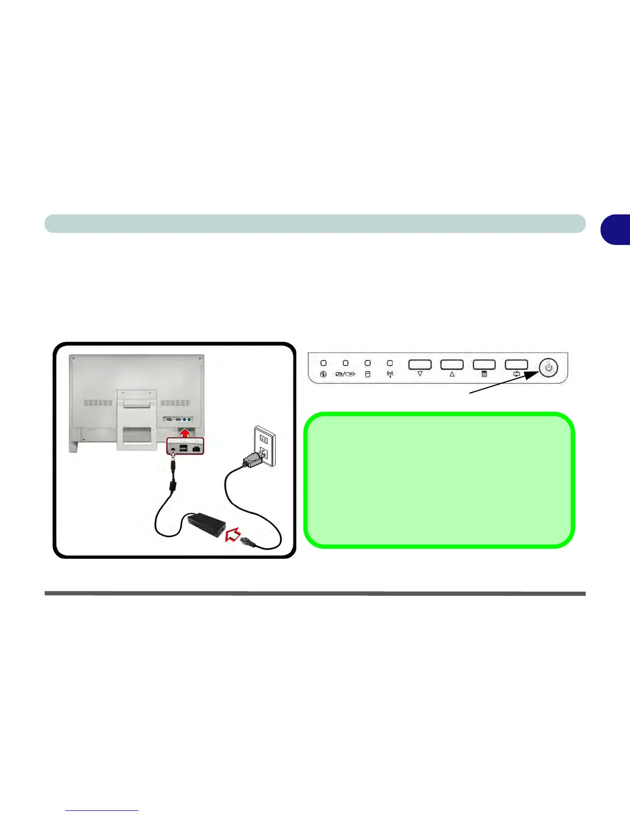 Figure 1 - 1 - AC/DC Adapter Plugged-In/Power Button