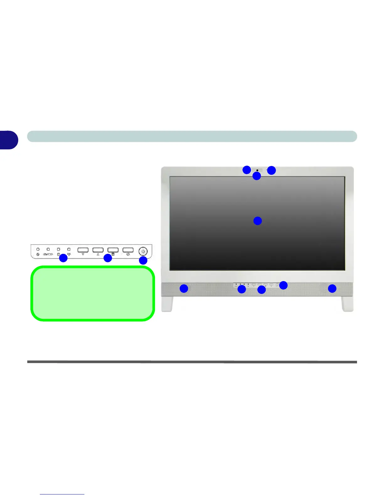 Blue Sonic Multimedia PC - Optional Built-In PC Camera 2; System Map: Front View - Model a